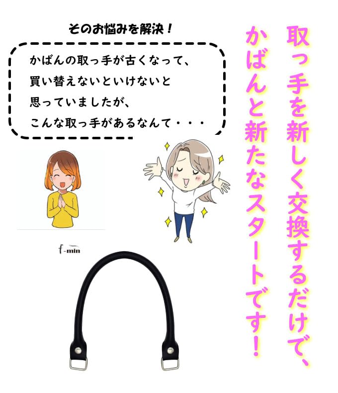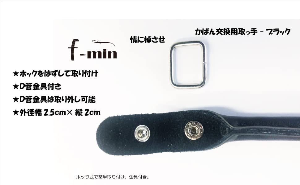 [f-min] 本革 2層レザー 黒 D菅付き かばん 持ち手 取っ手着脱可能 バッグ持ち手 38cm 50cm 60cm ブラック かばん取っ手 ビジネスバッグ修理用 補修用持ち手 バッグハンドル 手芸用持ち手 牛革 自分で取り替えられる持ち手 交換用持ち手