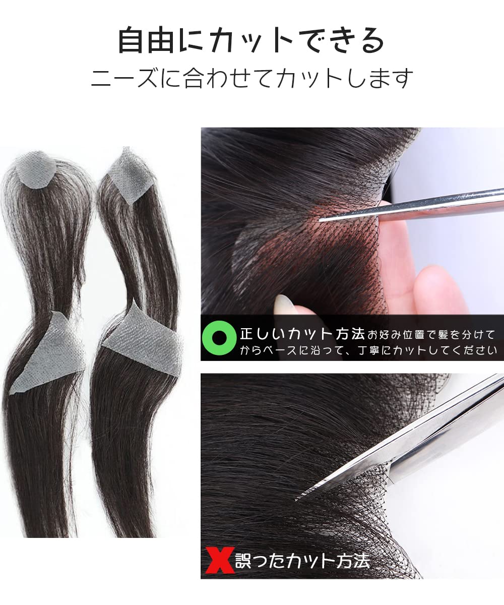 ニーズに合わせてカットできる:生え際、傷にもつけられます。好きぶんに合わせてネット自由にカットできる。本物の髪が増やせます。たとえ間近で凝視されても、地毛にしか見えないほど。
