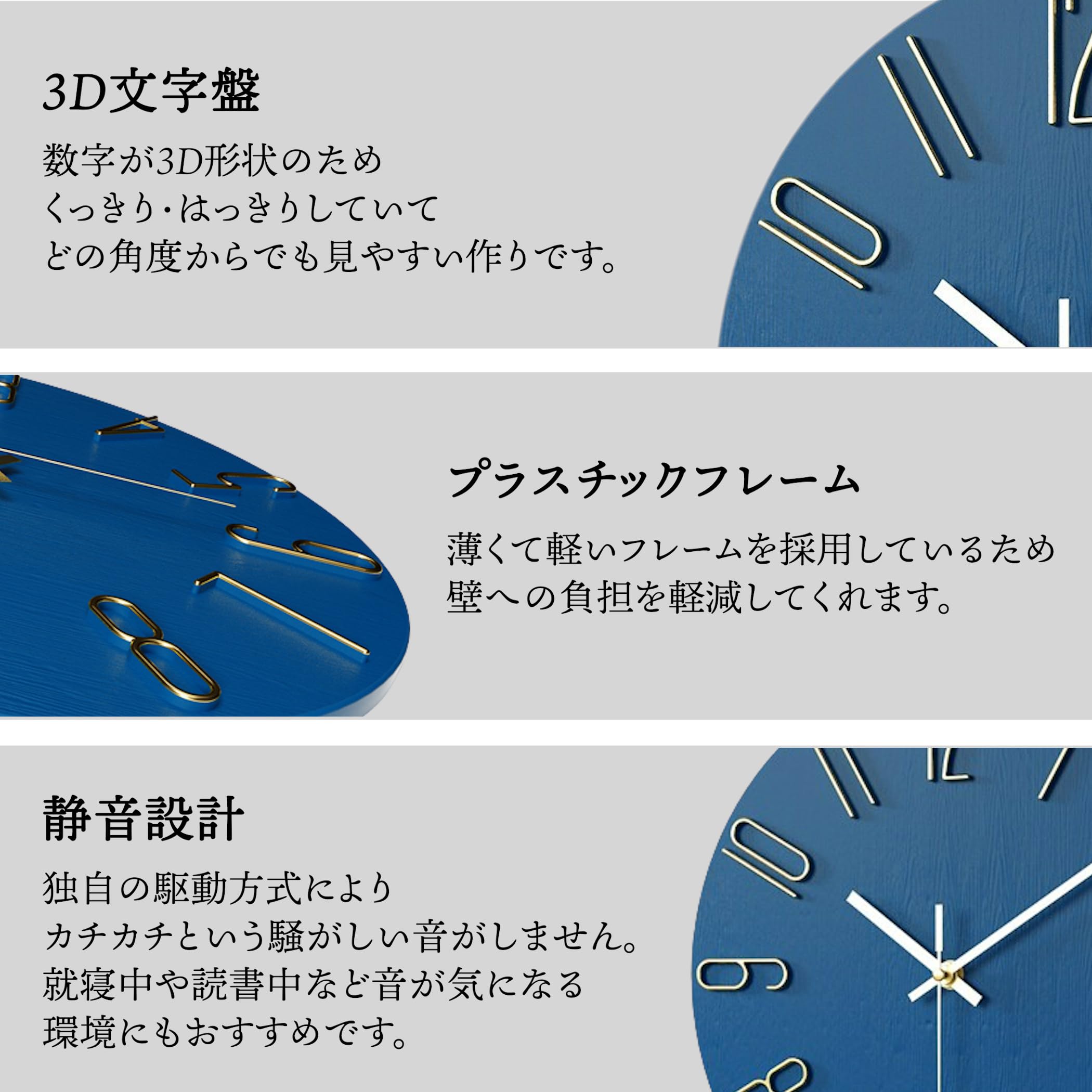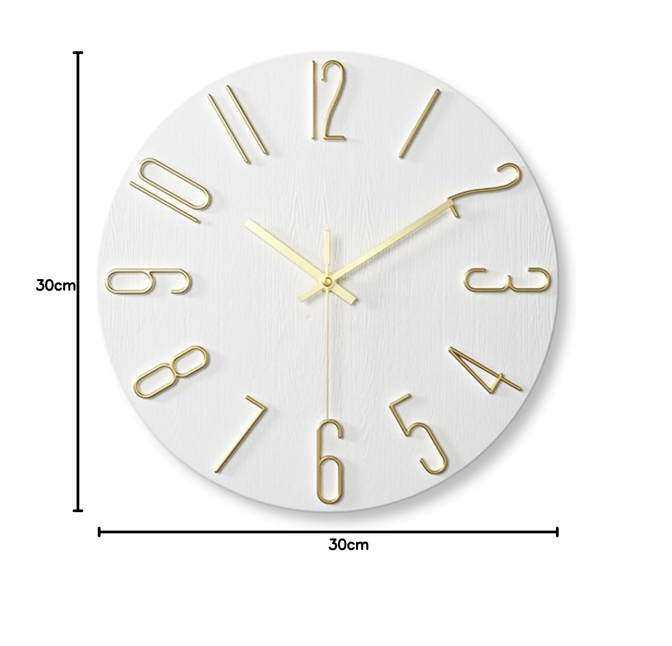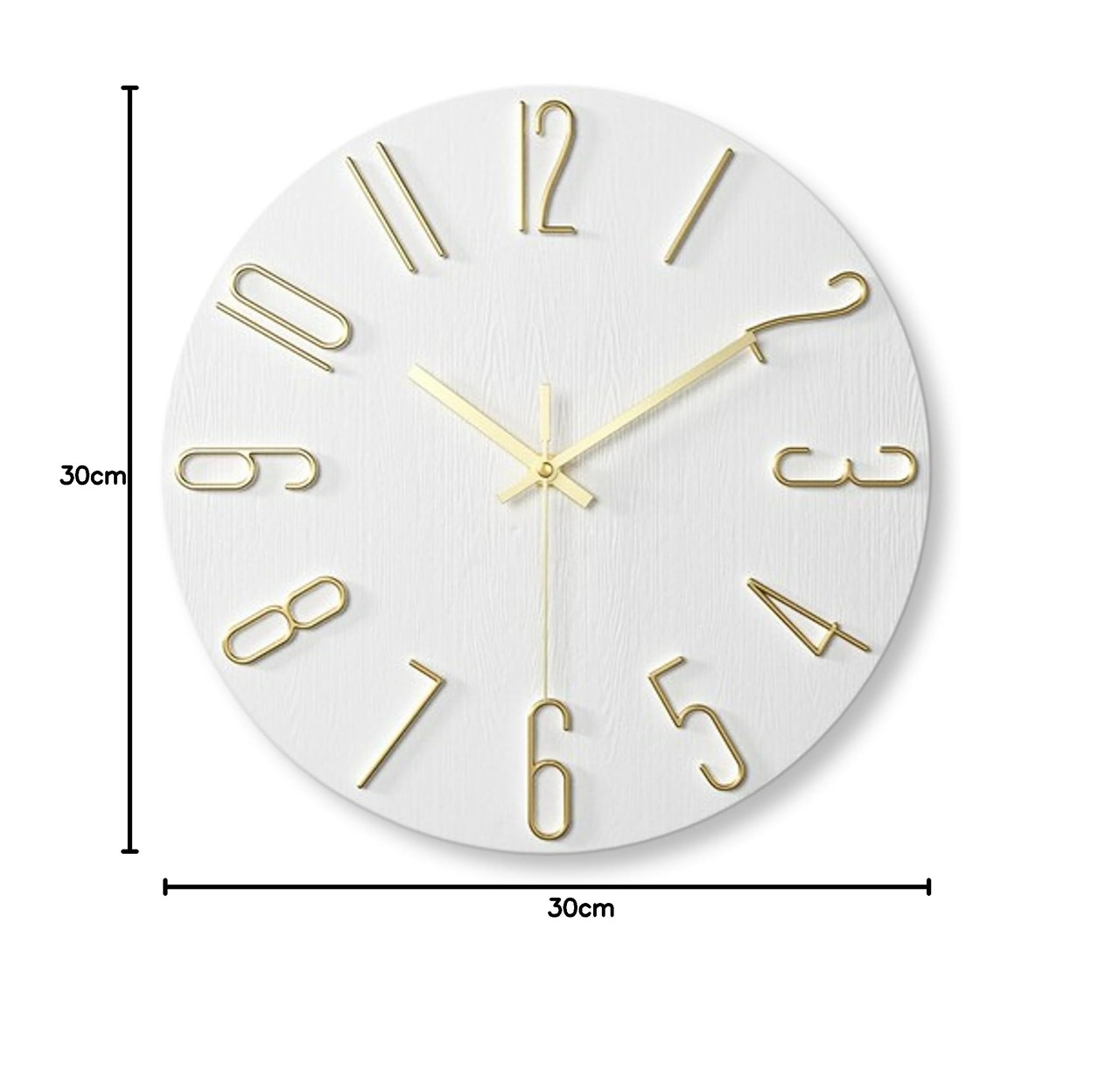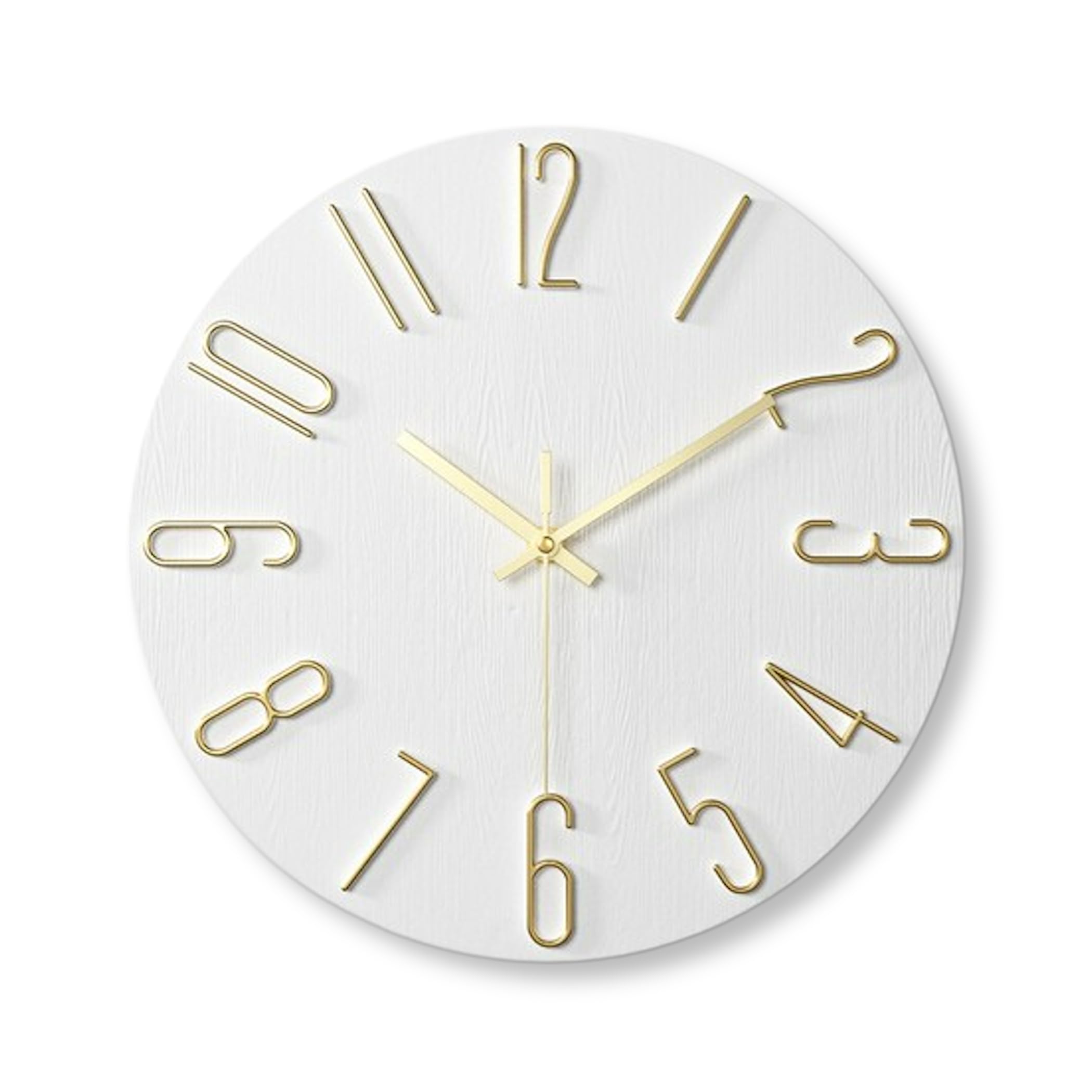 Lezalic 壁掛け 時計 シンプル 北欧風 インテリア アナログ ウォール時計 静音 リビング オフィス 寝室 (ホワイト(金文字))