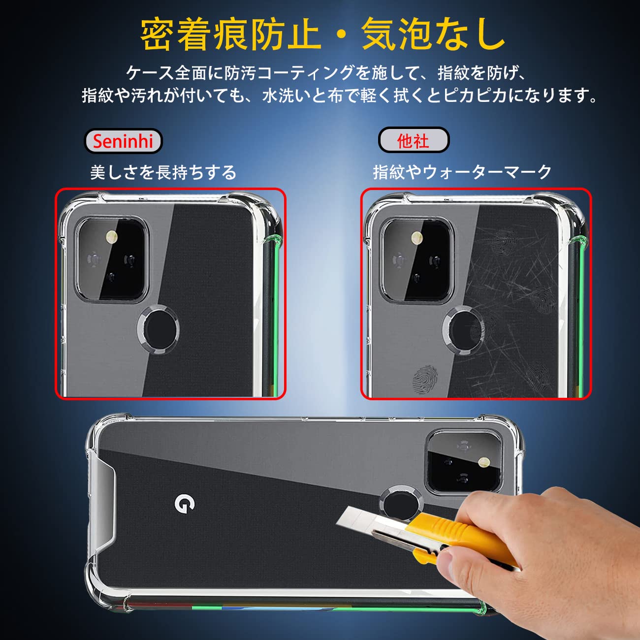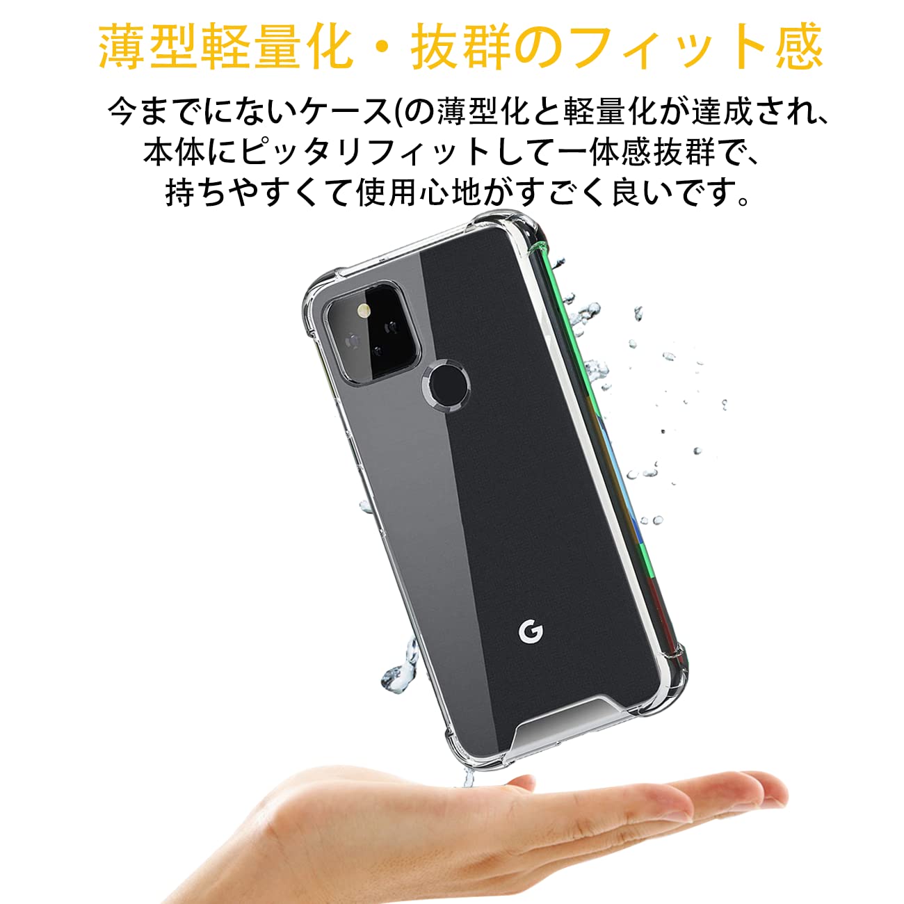 【優れた精度】Google Pixel 5 ケース 薄くて頑丈で、程よいグリップ感があり、できるだけスマートフォン本体のスリムさを極力損なわないように設計した透明背面ケースです。位置、及び全てのスピーカー、ポート、ボタンを精密に設計しており、充電、及びヘッドフォンで音楽を聴いても機能的な使用を妨げなく、携帯電話に負荷をかけなく、簡単に取り付けることができます。【完全透明・上質な透明感】 超精密な光透過分子を備えて、後ろの光透過率は 99% に達します。後ろのポリカーボネートの耐用性と耐摩耗性が抜群です。本来の美しさや高級感を影響しなく、シルクと全く同じ風合いで、涼しい触る感じがあります。誰にでも適用し、夢中になってしまって触りたくなります。