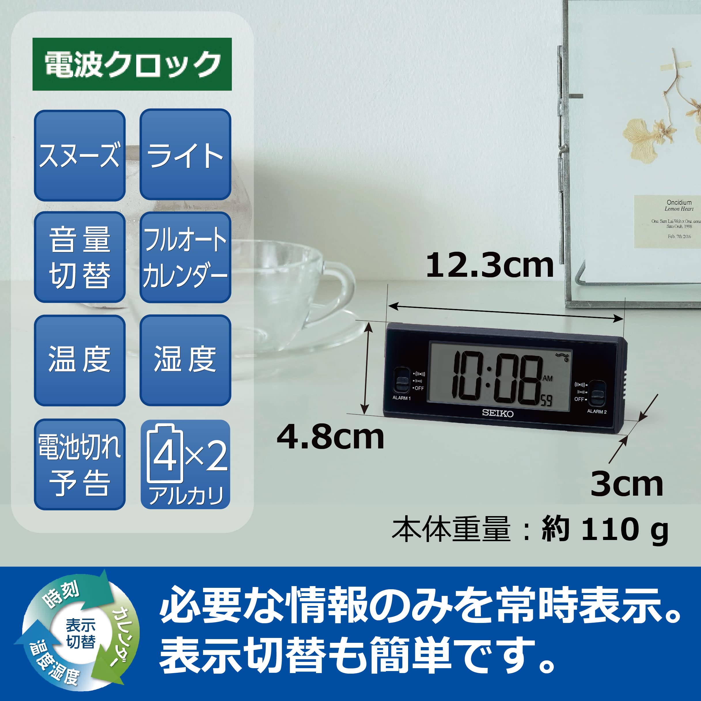 セイコークロック 目覚まし時計 置時計 デジタル 電波 黒 48×123×30mm SQ321K