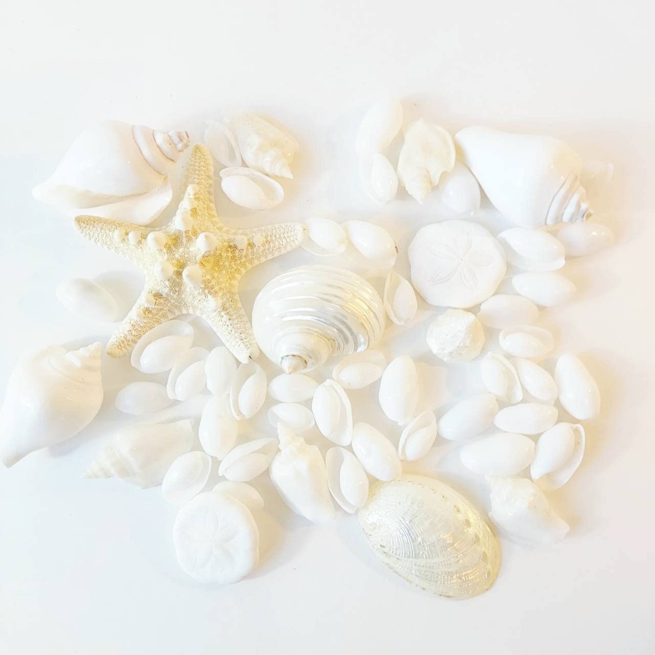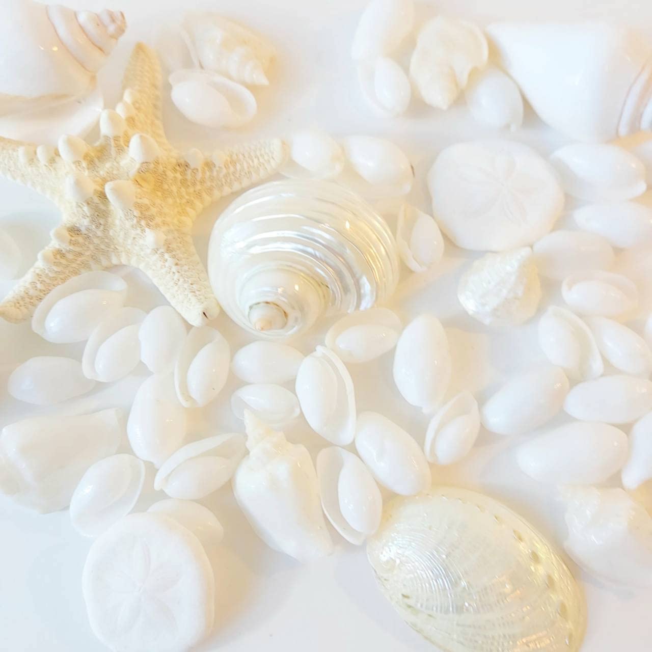 汚い貝殻を排除し、美しい貝殻のみを選別しています。マリンディスプレイやハワイ風ウエディングの飾り、夏のインテリアの飾りとして大人気!手軽に夏らしい素敵な空間が演出できます。ホワイトを厳選したので、お部屋を選ぶことなく馴染みます。インテリアだけでなく、工作などハンドメイド作品にも使用できます。〇貝殻の種類によっては、背面に貝殻が呼吸するための穴(呼水孔)がありますが、こちら仕様となります。 〇なるべく綺麗な貝殻を選別しておりますが、多少の欠け・ヒビ・穴のある貝殻がセットの中に含まれてしまう場合があります。 〇ヒトデにつきましては貝殻で漂白・防腐処理をしておりますが、特有の磯の香りがあります。匂いが気になる場合は、ベランダ等の日陰で風通しの良い場所に数日間置くと匂いが軽減します。〇天然素材なので、サイズに多少の個体差があります。