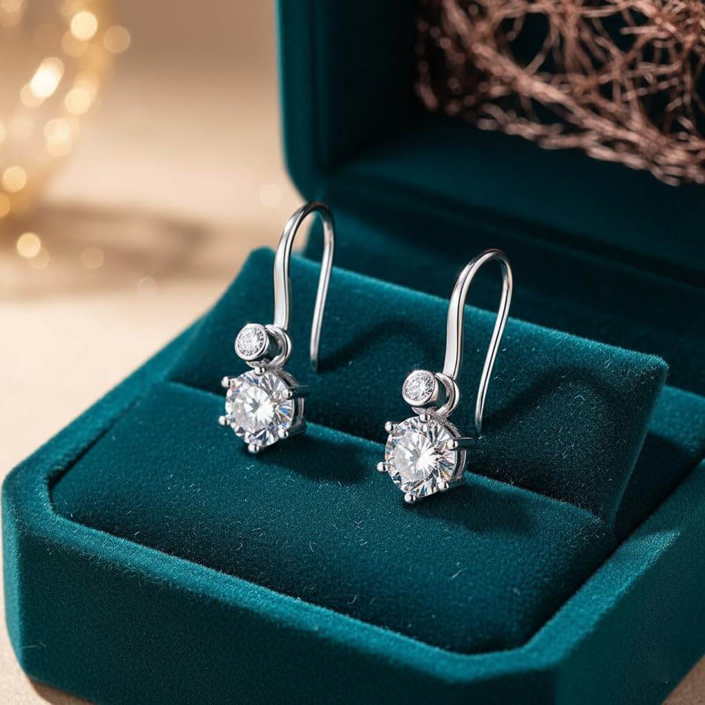モアッサナイトペンダントイヤリング:ブリリアントカットを施した1.06カラットのモアッサナイトが、輝きと色彩を際立たせます。Dカラーレス、VVS1クラリティのGRA鑑定書付きで、あらゆる角度から鮮やかに輝きます。 925スターリングシルバー製のフックイヤリングは、グリーニング(緑化)を防ぎ、敏感肌にもお使いいただけます。不快感やアレルギーを軽減し、快適な着け心地で、普段使いに最適です。 仕事、デート、ディナー、パーティー、お祝いなど、様々なシーンで活躍します。光を受けて輝くモアッサナイトは、時代を超えたエレガンスを自信を持って演出します。 エレガントなボックスに収められたこのイヤリングは、誕生日、記念日、お祝いなど、特別な日に最適な贈り物です。その美しい外観と品質は、真心を込めてお作りしたジュエリーです。 専門のカスタマーサービスが、仕様、性能、アフターサービスなどに関するご質問にお答えし、責任を持ってお客様にご満足いただけるよう努めています。