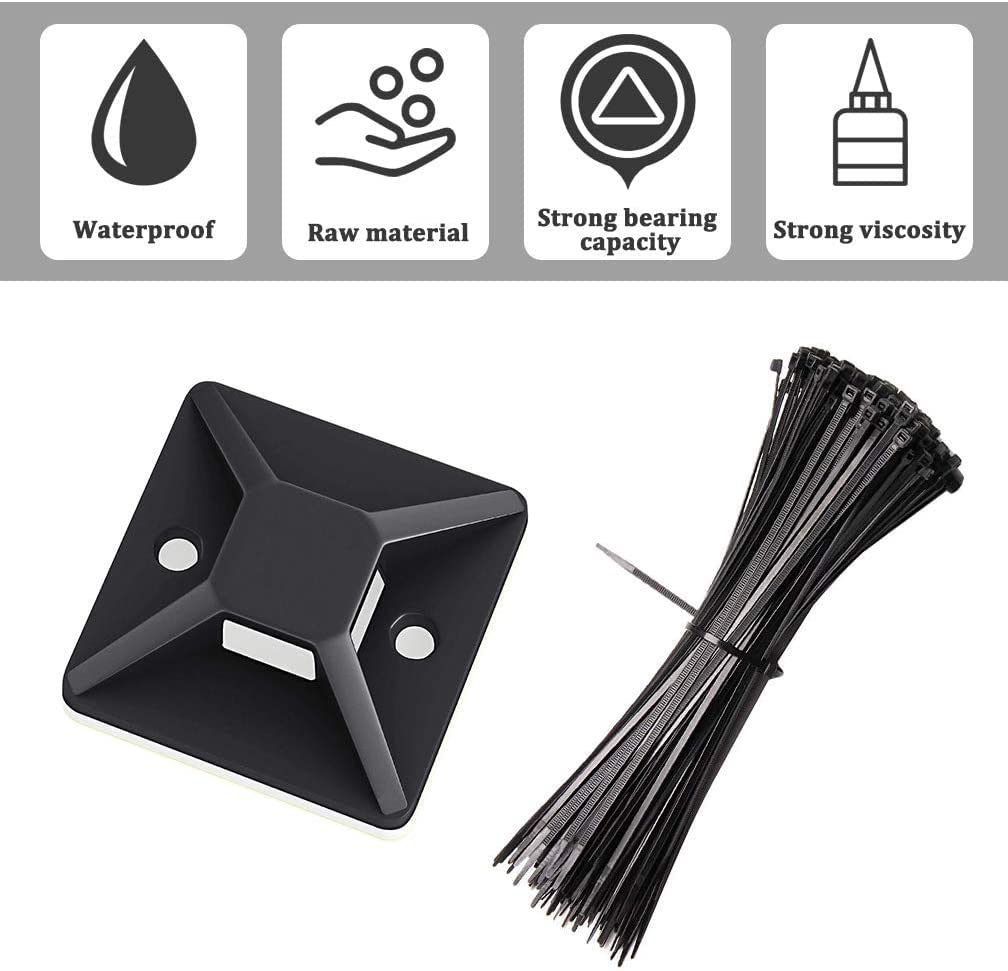 ケーブルタイ マウントベース ナイロン結束バンド 50個 セット ブラック ナイロンケーブルストラップ 強力粘着テープ付き 配線 固定具 ケーブル コード 収納 整理 耐熱 耐候性 18mm By Viaky