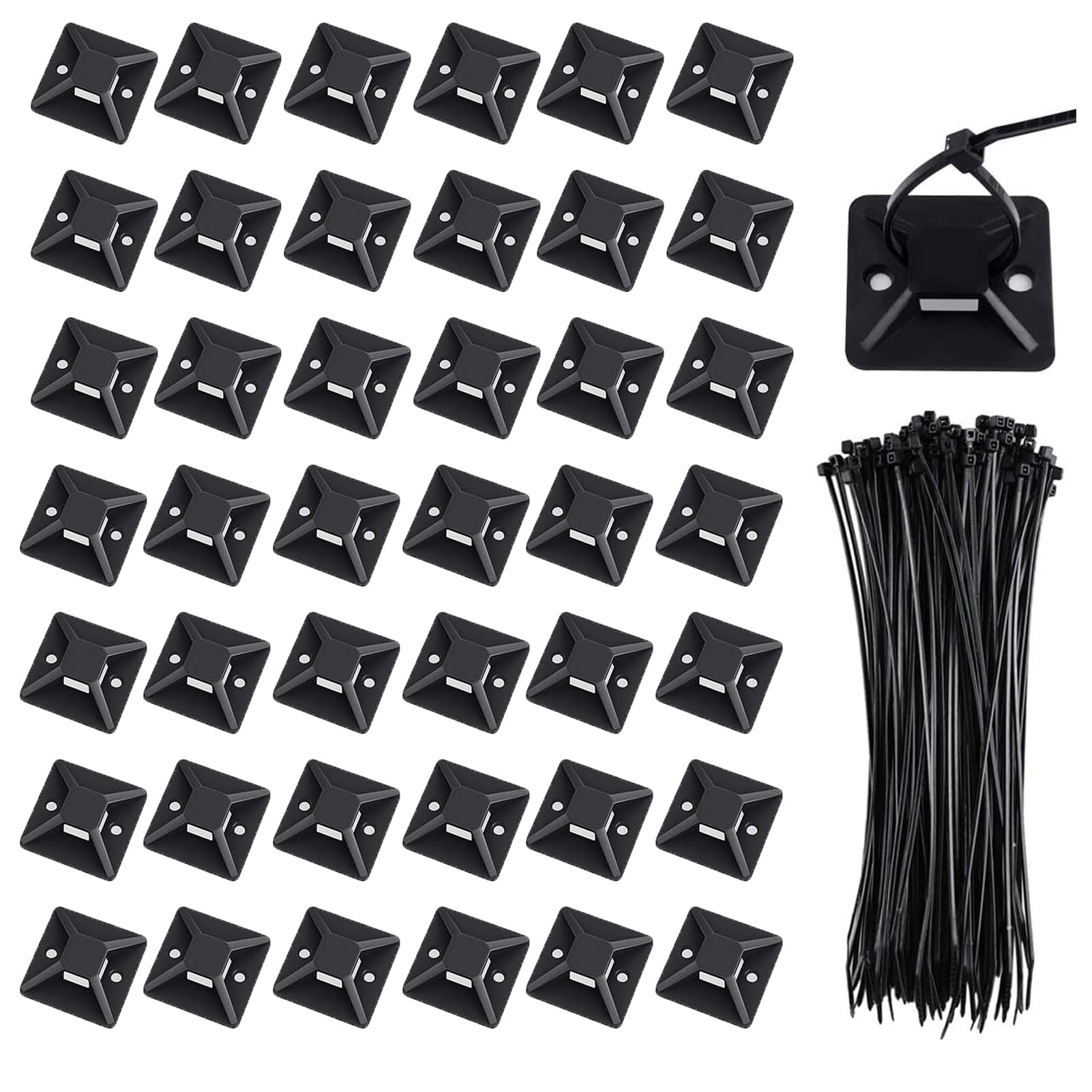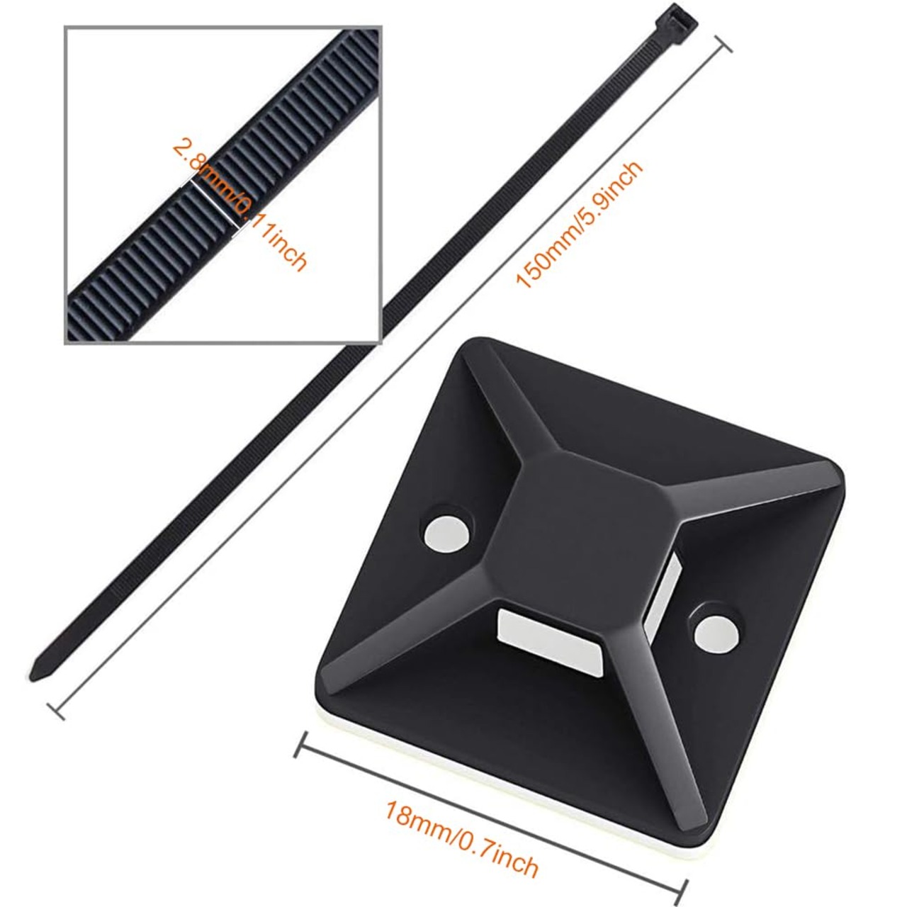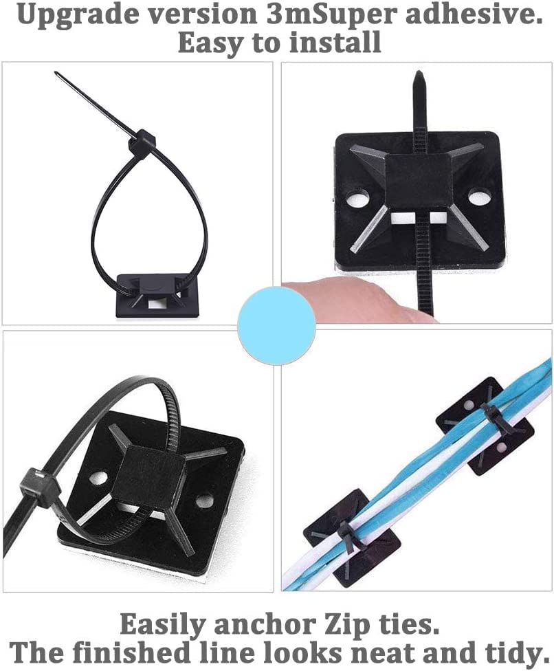 【人気】ケーブルタイ マウントベース ナイロン結束バンド 50個 セット ブラック ナイロンケーブルストラップ 強力粘着テープ付き 配線 固定具 ケーブル コード 収納 整理 耐熱 耐候性 18mm By Viaky | GIGATERA