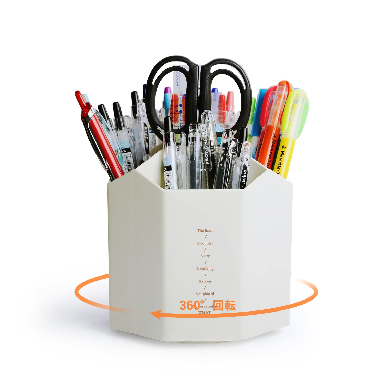 【人気】Homdolaser ペン立て 360度回転 ペンスタンド 5グリッド ペンホルダー 大容量 鉛筆立て 回転 鉛筆たて 多機能 収納ケース プラスチック 小物分類 机上収納 小物入れ オフィス 便利 卓上文房具 オフホワイト | GIGATERA