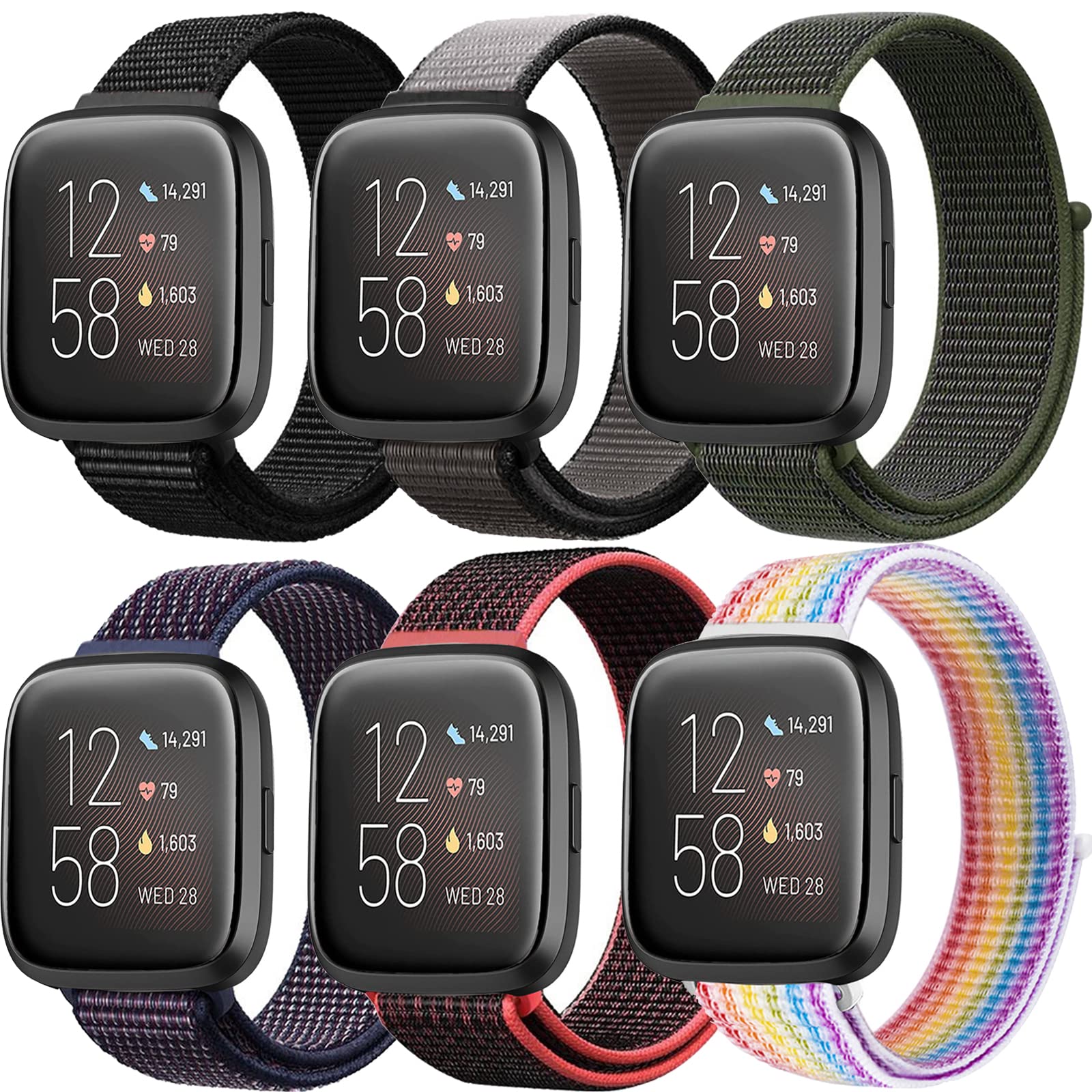 【セール】【6枚セット】ナイロンバンドコンパチブルFitbit versa 2/versa/versa Lite バンドレディース/メンズ、通気性、男性と女性、人気、軽量、快適、耐久性、スポーツループコンパチブル フィットビット versa 2/versa/versa Liteナイロンスポーツバンド | GIGATERA