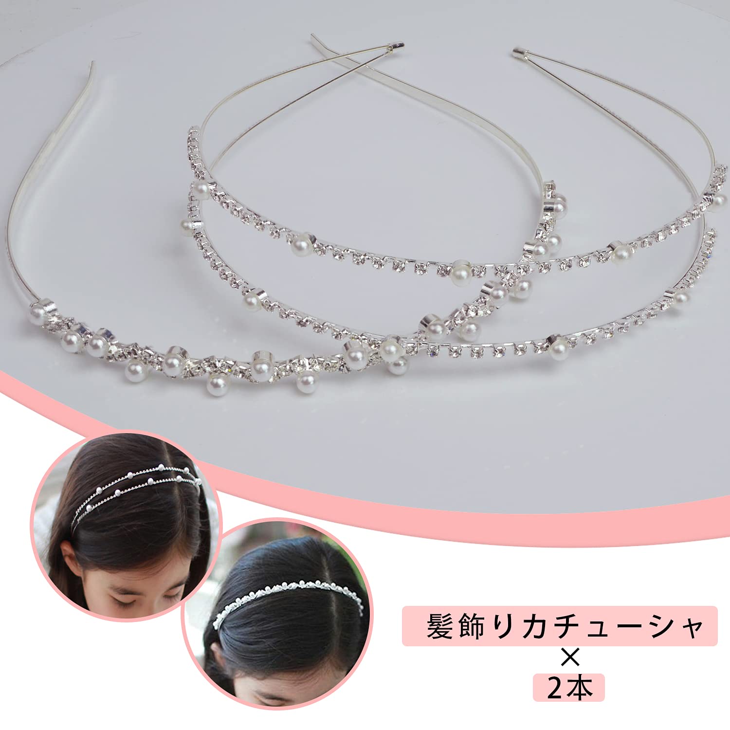 カチューシャ 髪飾り 子供 パール ティアラ キッズ ヘアアクセサリー 結婚式 おしゃれ ヘッドドレス 痛くない 2本セット 入学式 卒業式 発表会 セレモニー 女の子