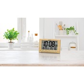 柔らかな印象の明るい木目調のフレーム。便利な温度湿度表示付き。記念品にも最適。