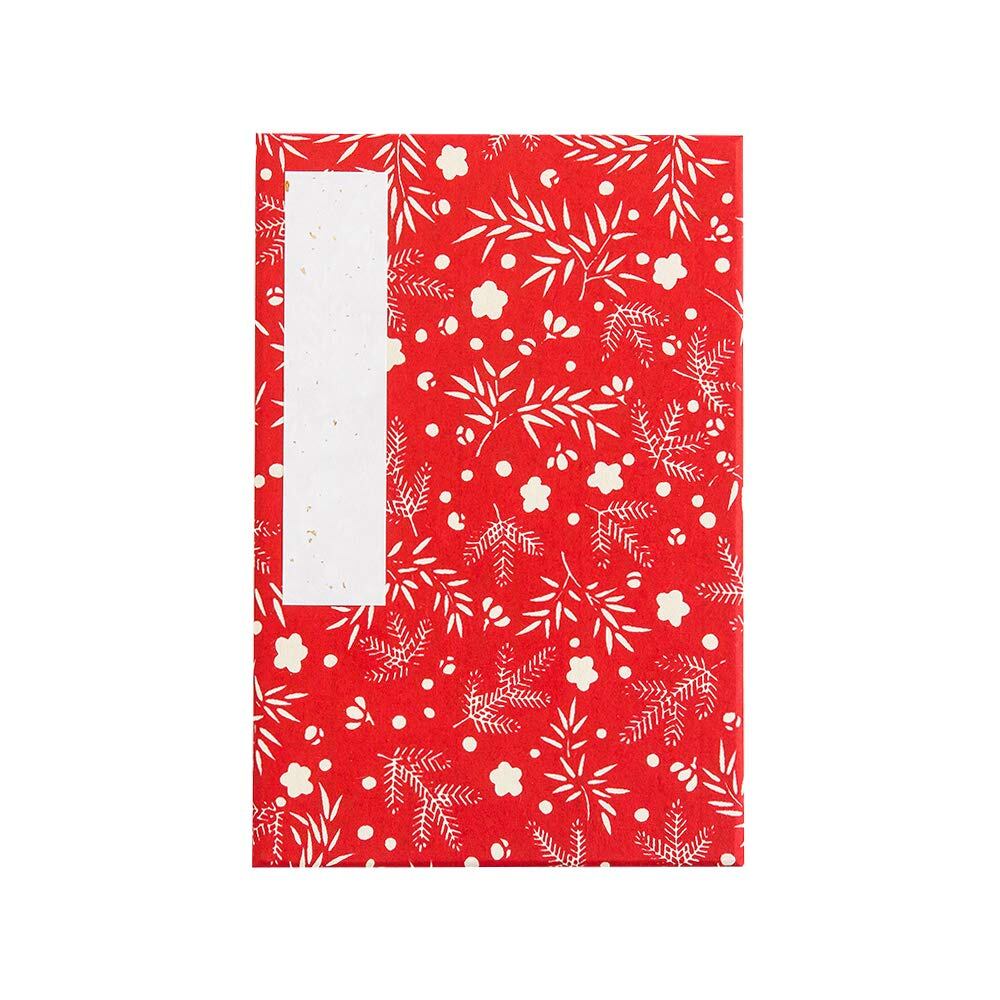 御朱印帳 (松竹梅 赤) 大判サイズ 12 × 18 ㎝ 蛇腹式 両面使い 11山 44ページ分 奉書紙 松竹梅 赤