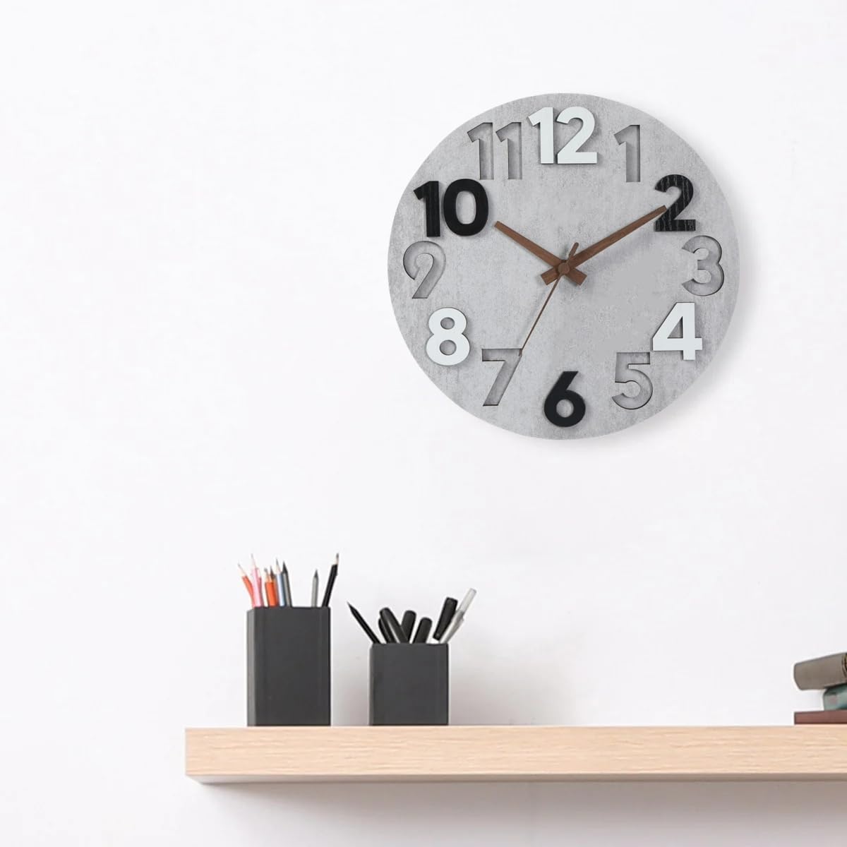 掛け時計 電波時計 連続秒針 直径31cm 静音 本体/MDF 中密度繊維板 針/木製針 ZAE-311 ライトグレー