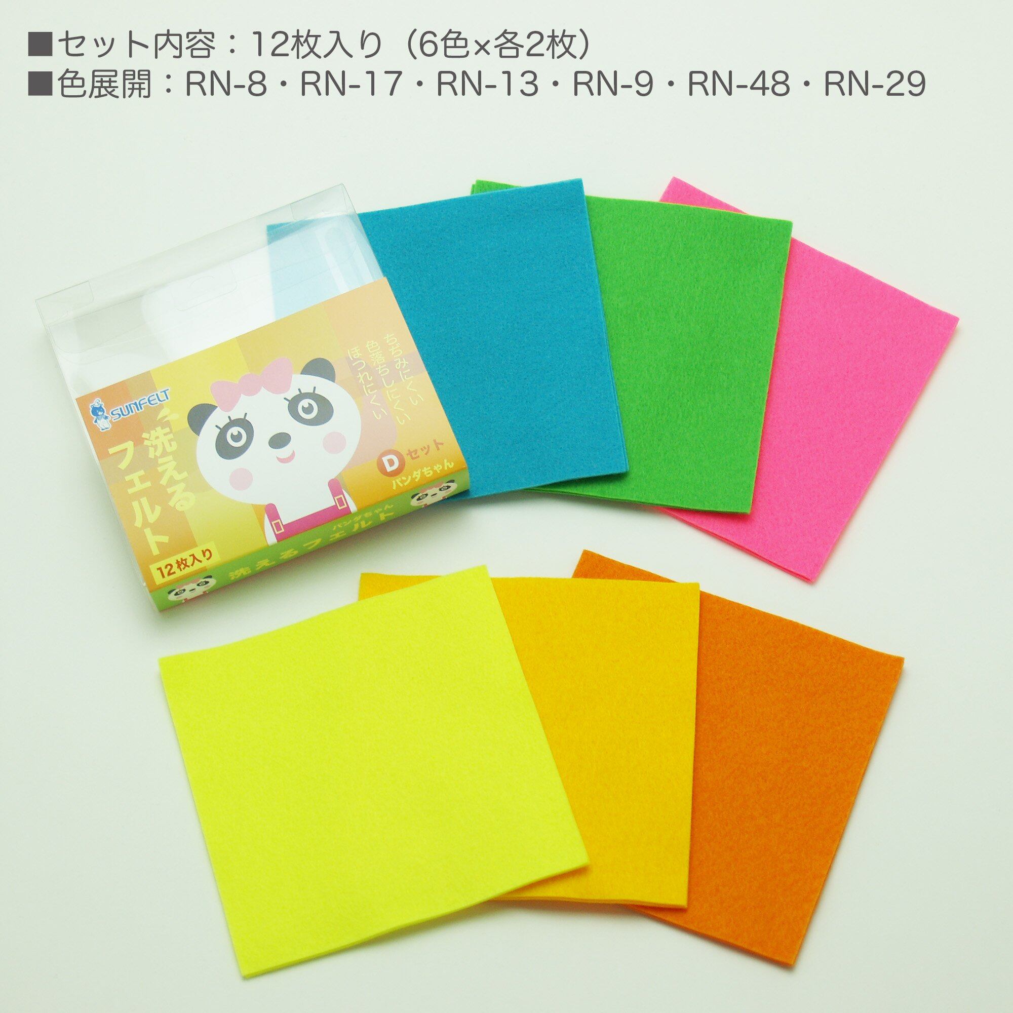 セット内容:約10cm×10cm ウォッシャブルフェルト(RN-8、9、13、17、29、48)