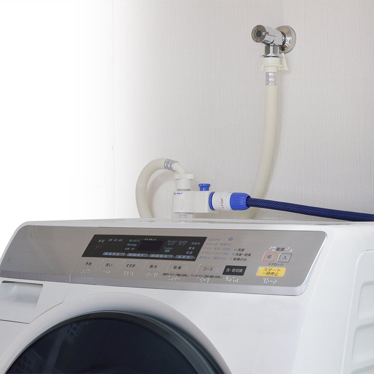 全自動洗濯機から散水ホースリールやホースをつなぐことができる便利なアイテムです。
