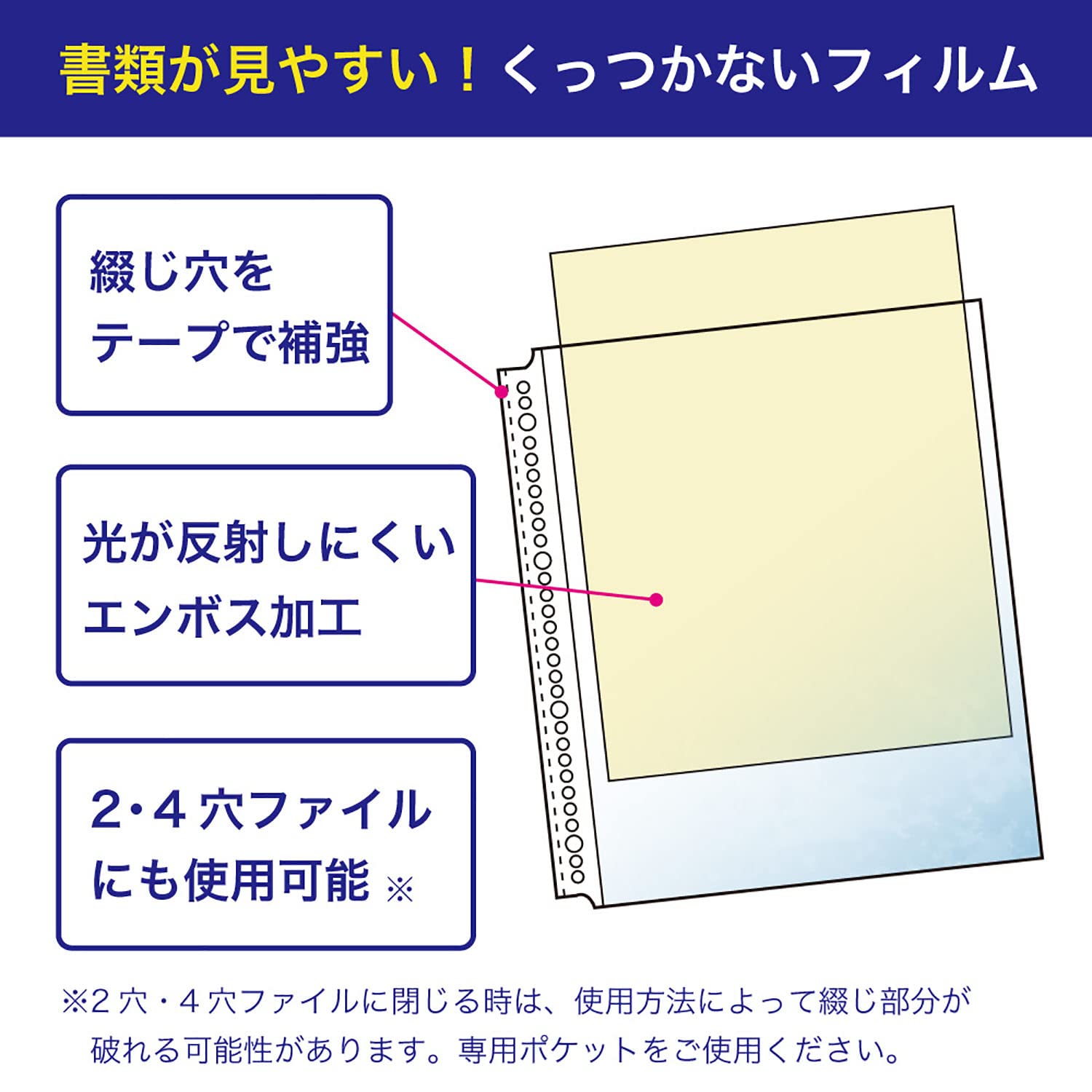●環境対応型ポケット交換タイプのクリヤーブックにお使いください。●厚さ0.06mm、トップインタイプの標準仕様。●綴じ穴部はテープで補強していますので、丈夫で傷みにくく、長期間ご使用いただけます。