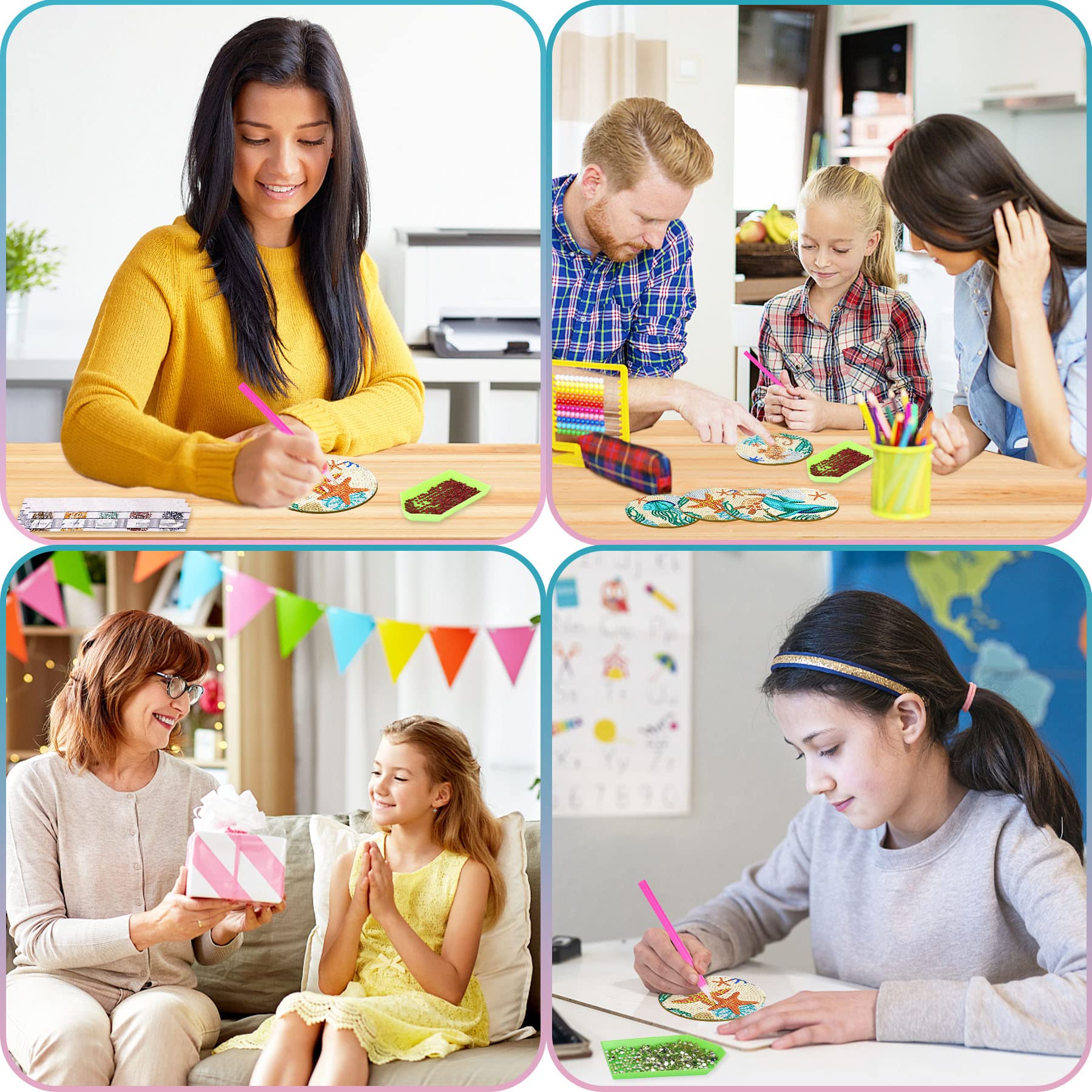 【適用場合】多様な絵柄とわかりやすい作り方で、ダイアモンドアートの初心者に最適です。また、約10cmの丸型のちょうどいいサイズ感で、子供の集中力を高めるための手芸キットとしてお勧めです。誕生日、子供の日、祝日などに家族や友人にプレゼントとして、DIYの喜びを一緒に分かち合うことができます。
