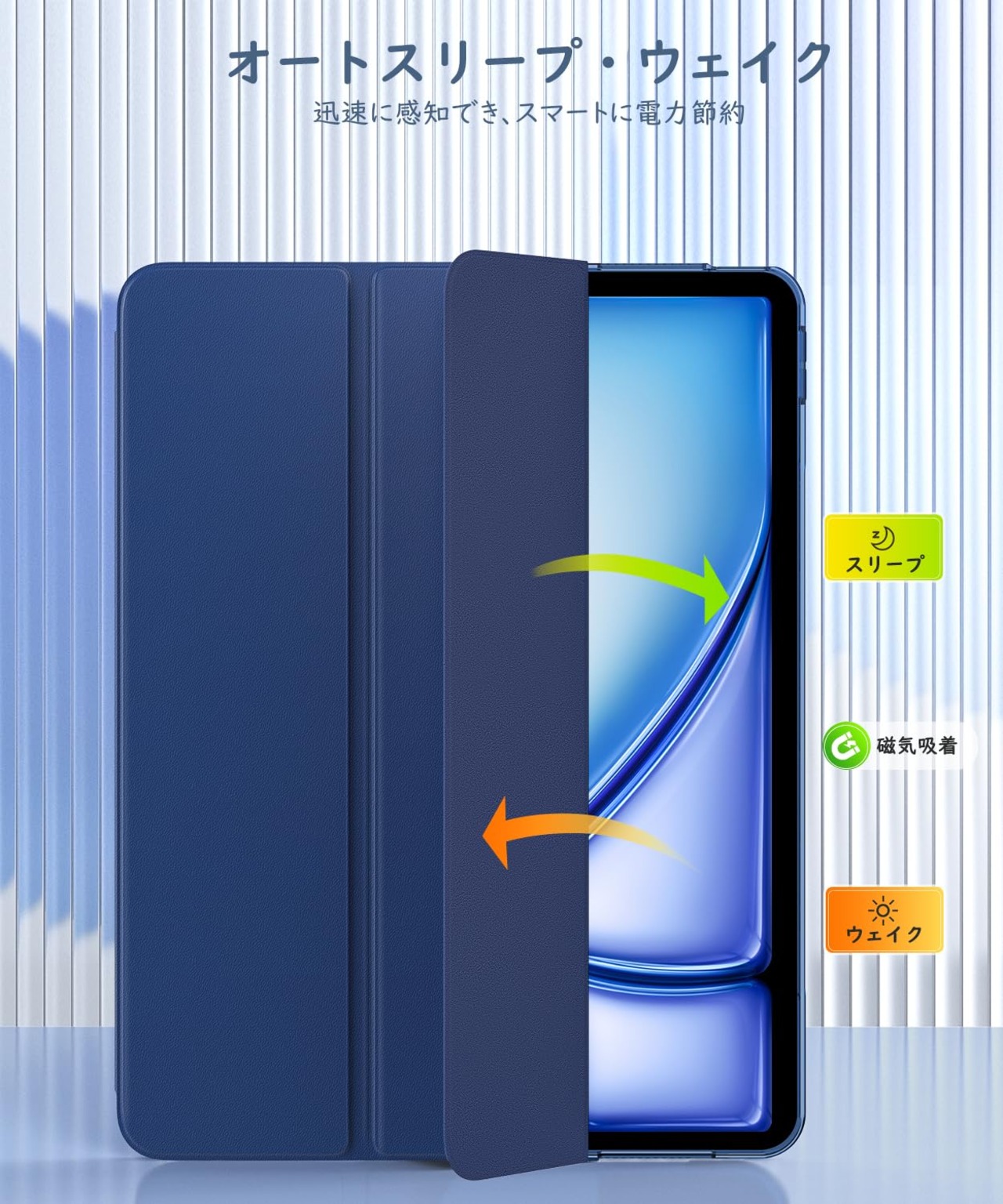 iPad Air 13インチ M3/M2 ケース 2025/2024 Dadanism iPad Air 13 ケース M3 2025年新モデル iPad Air 13インチ M2 カバー 2024 アイパッド エア エアー Air 13 オートスリープ機能 薄型 PU+TPU 三つ折り スタンドケース 半透明 ソフト マイクロファイバー裏地 耐衝撃 適格請求書発行可 NavyBlue