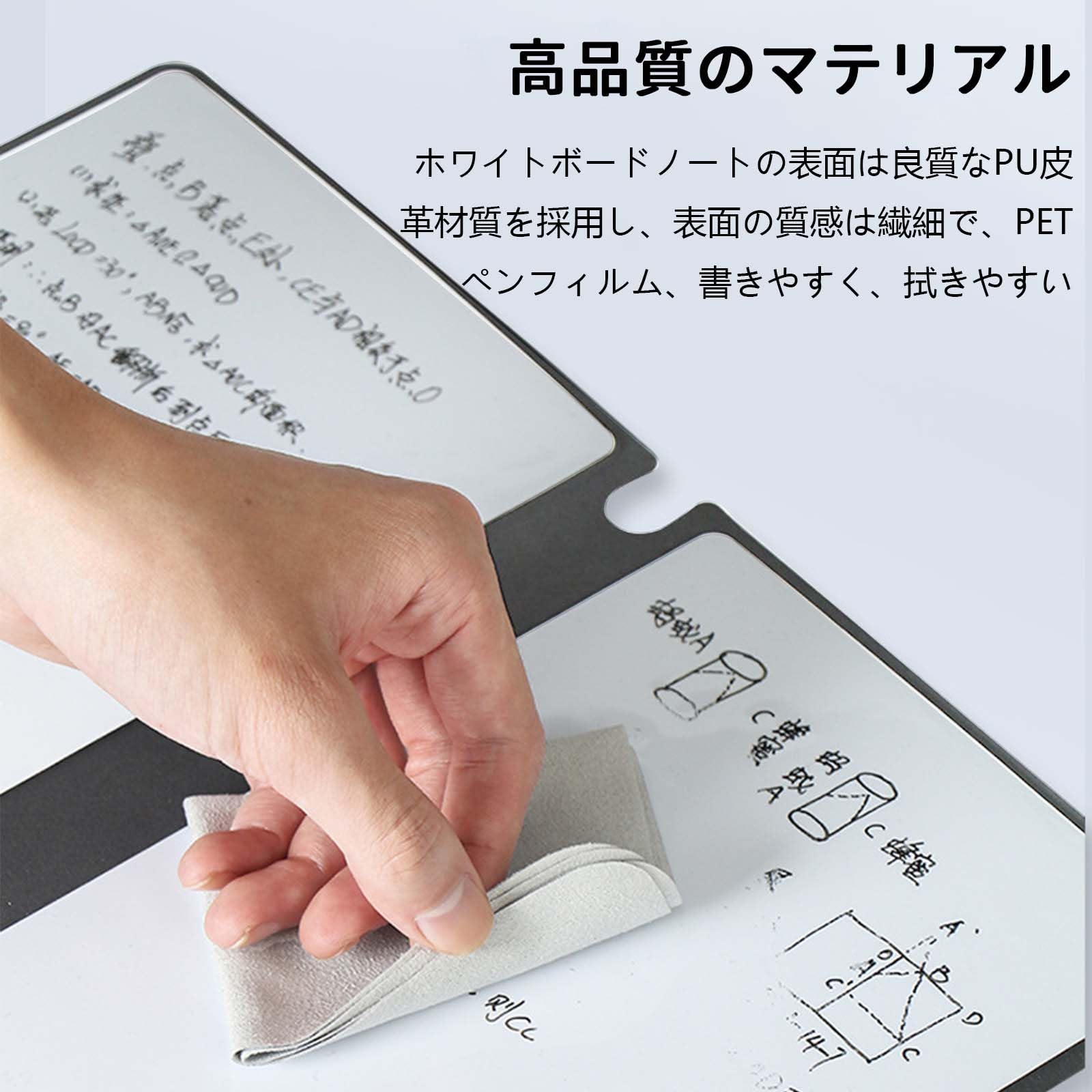 ホワイトボード ノート ポータブル A5 ホワイト ボード ホワイトボード 折り畳み 手帳型 ホワイトボード 両面タイプ 繰返し利用 軽量 持ち運び便利 A5サイズ 革製 手帳型 会議室 家庭 学校 メモ 子供 落書き オフィス用 事務用品 (ペン3本+スポンジワイプ+布付き)