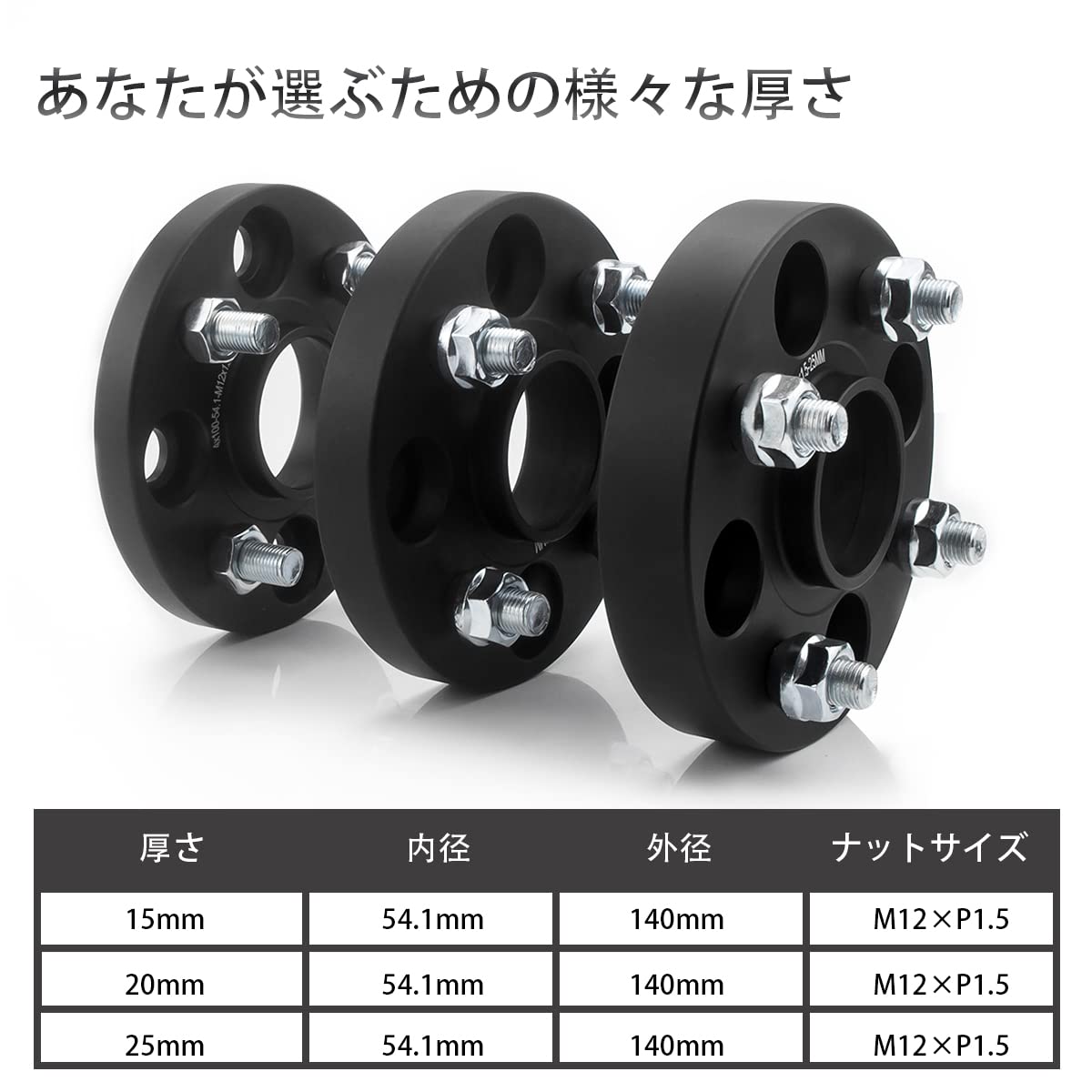 【ボルト&ナット】本製品のボルトとナットには、強度の弱い亜鉛ボルトを使用せずに、高強度のカ一ボンスチ一ル鋼を採用。高い強度で車の足元を支えます。※ナットは専用設計の為、スぺ一サ一の厚みによってナットの長さも異なります。