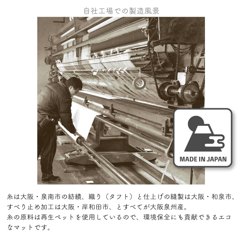 日本製 キッチンマット|サイズ:45×180cm 素材:表面 ポリエステル100%:裏面 不織布(ポリエステル)キッチンマット すべり止め加工済|パイル長(毛足):約 7mm|全厚:約 8mm|カラー:グリーン|大阪・泉州にある自社工場からお届けするオリジナルキッチンマット。やわらか素材で折りたたみやすく扱いやすいのがこだわりポイント☆丸洗いできるので、汚れても大丈夫!(※洗濯機使用の際は洗濯ネットに入れてください。)|キッチンの他、ベッドサイドや廊下等にもお使いいただけます。床暖房対応しています。