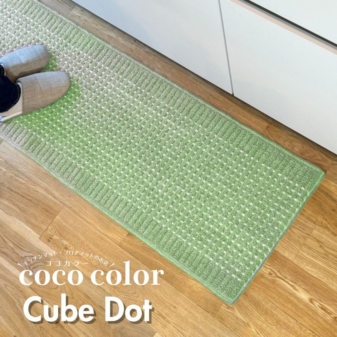 キッチンマット 日本製 洗える おしゃれ CubeDot 【CoCo Color】 (45×180 グリーン)