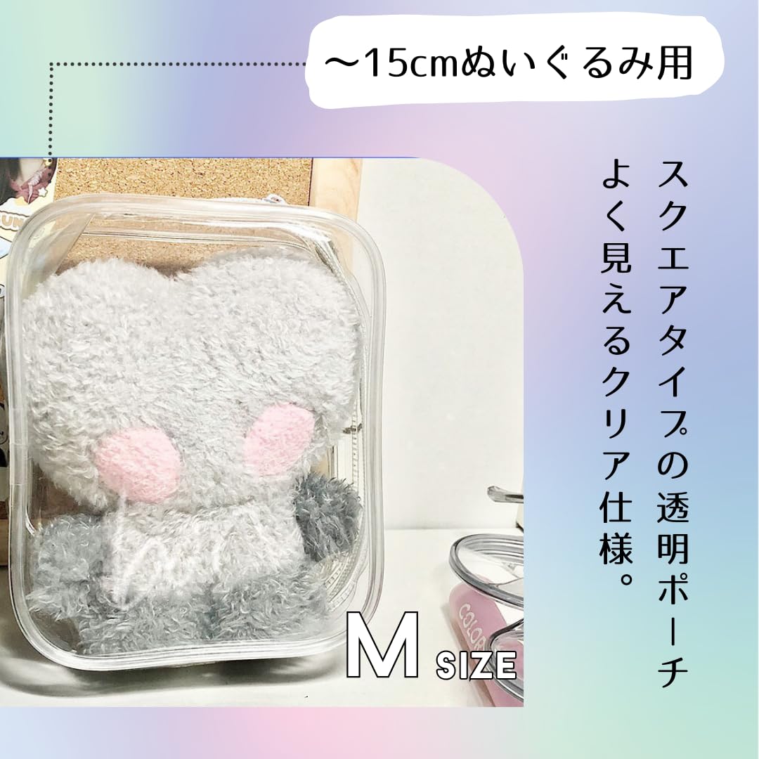 【推し活・ぬい活に♪】 お気に入りのぬいぐるみをポーチに入れて一緒にお出かけ♪スクエアタイプの透明ポーチです。ぬいぐるみがよく見えるクリア仕様です。