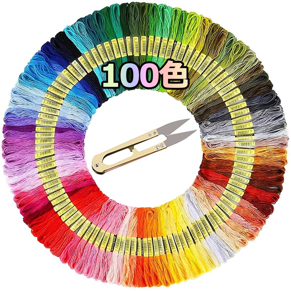 刺繍糸 初心者向け カラフル 縫い糸 手芸用糸 刺しゅう糸 クロスステッチ 8m 専用ハサミ付き (100色セット)