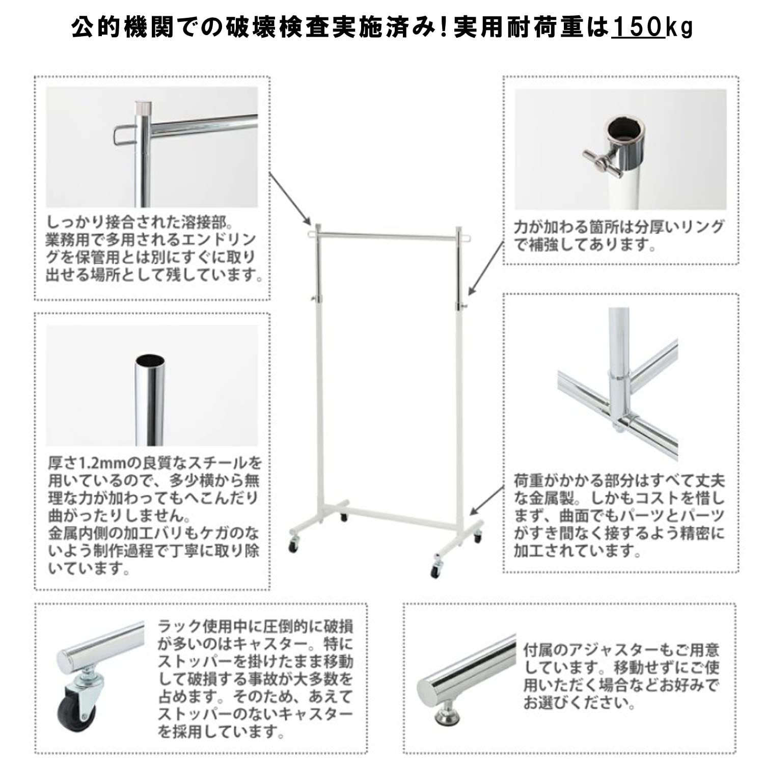 【在庫処分】TAMATOSHI ハンガーラック スリム 省スペース 収納 業務用 頑丈ハンガーラック シングル 耐荷重150kg 組立式 幅120cm ホワイト 5年