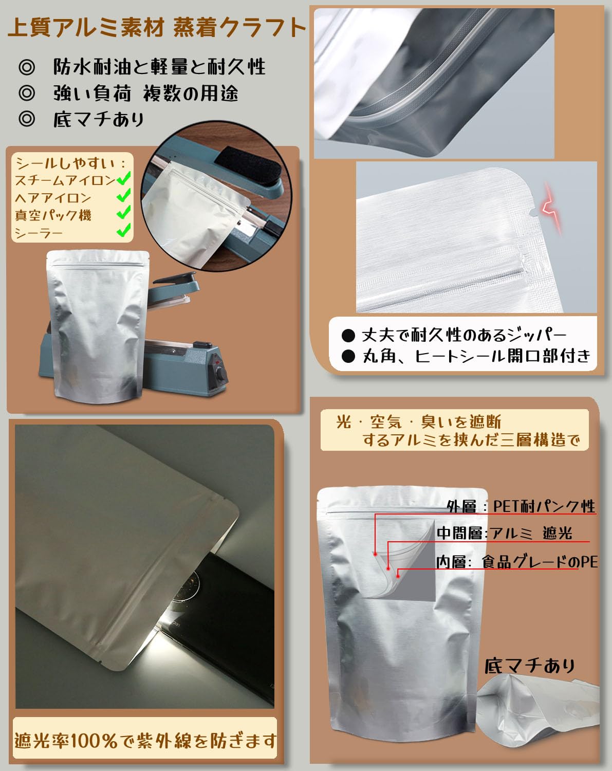 ?【ヒートシーラーで袋を密封可能】真空機での密封も可能です。 これにより、湿気やカビを防ぐだけでなく、長距離輸送でも食品の鮮度を保つことができます。