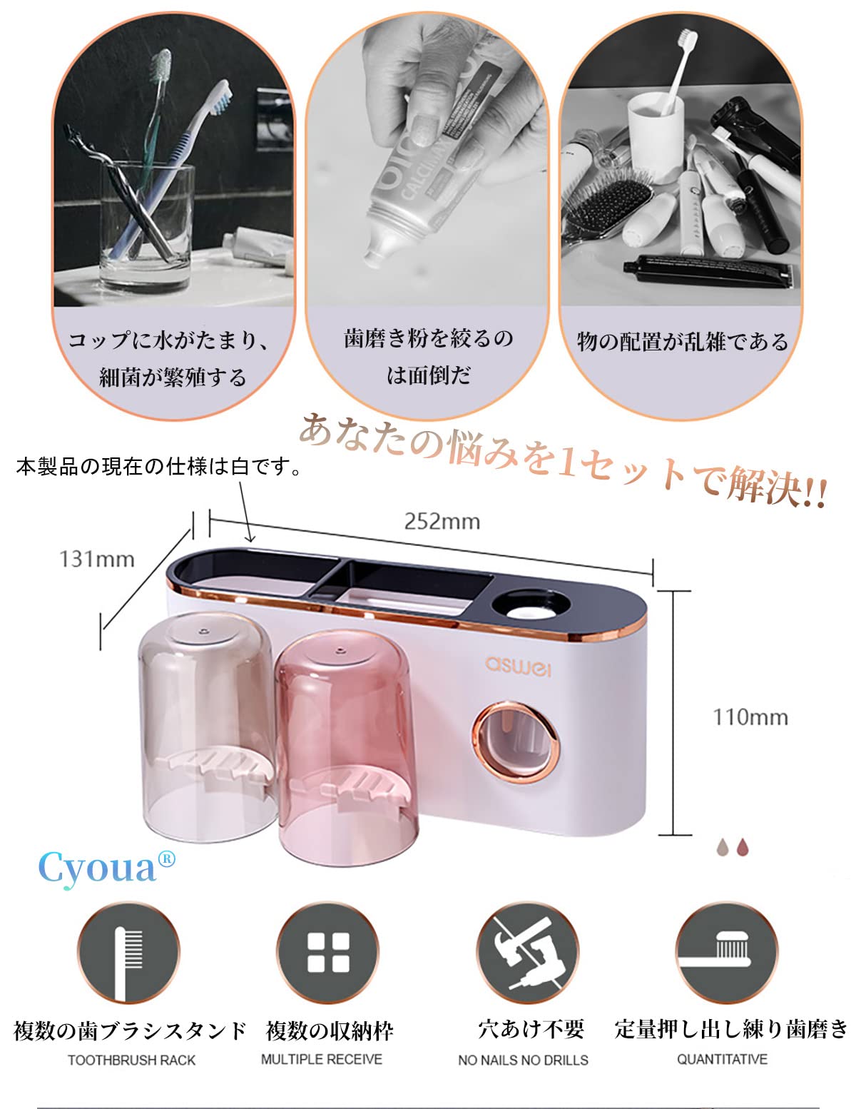 【商品仕様】歯ブラシホルダー6個、カップホルダー2個付き。壁掛け式の自動練り歯磨き機があります。歯磨き粉を蓋を開けて上に取り付け、入り口で歯ブラシで押し込むだけで歯磨き粉を絞ることができますので. 初めて使用すると、押し出し歯磨き粉が少量出るのは正常な現象だ。何度も使うと歯磨き粉の絞り出し効果が高い