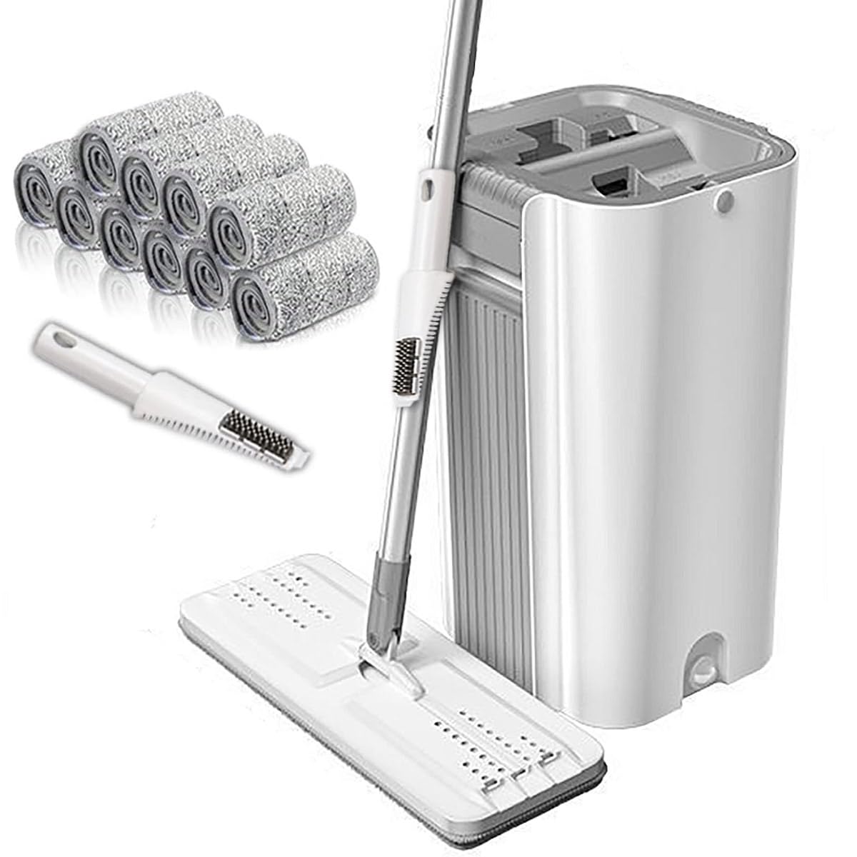 【在庫処分】2025アップグレードモップバケツ・高効率クリーニング 水拭きモップ フロアモップ モップ 拭き掃除 フラットモップ モップ絞り器 ?把 バケツ付き 床拭きモッ 10枚交換モップパッド付き mop 階段用モップ 手洗い不要 腰曲げず 乾湿両用 掃除用品 掃除道具 床掃除 家庭用 業務用 モップ | GIGATERA