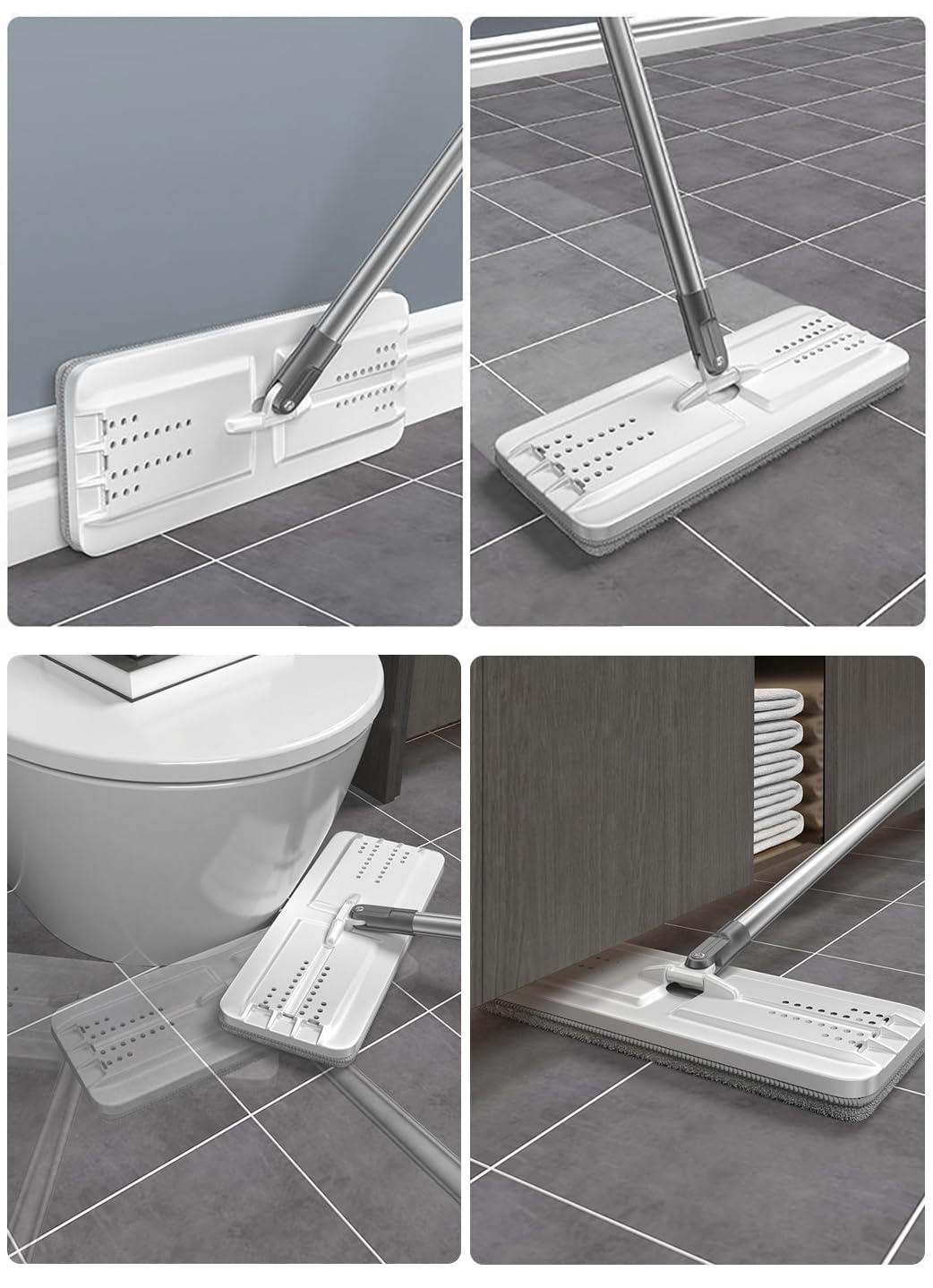 【多目的フラットモップ】堅木、ラミネート、タイル、ビニールの床、壁、ベースボード、天井、窓など、屋内のすべての硬い表面に適しており、家の隅々をリフレッシュできます。
