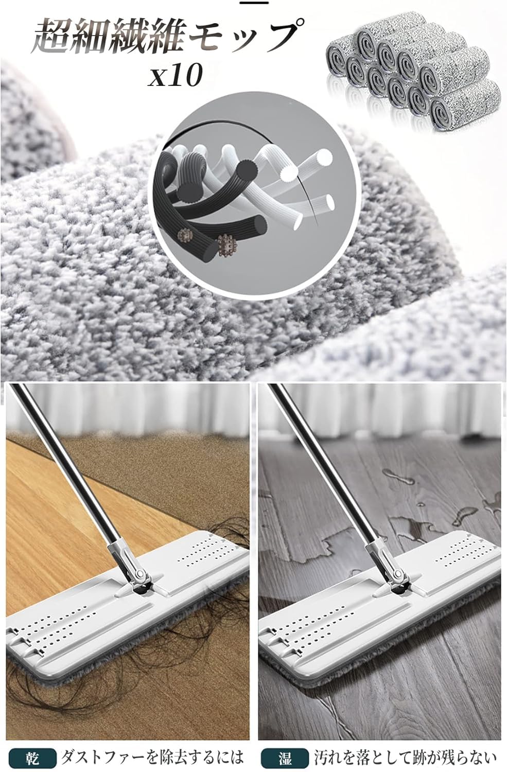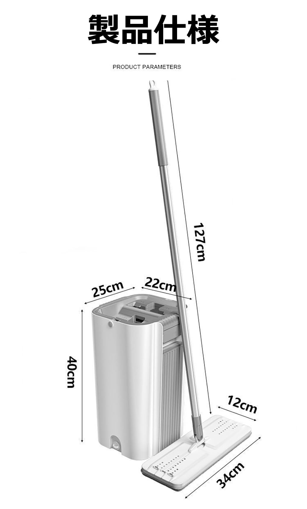 【製品仕様】モップ 拭き掃除は10個のマイクロファイバーモップパッドを備えています。モップパッドのサイズ:34 * 12cm。小型・コンパクトな掃除モップ 床掃除が終わったらバケツの中にモップを収納でき、キッチンやバスルームなどにモップバケツを収納できます。モップハンドル長さ:127cm,バケツサイズ:40 * 22 * 25cm