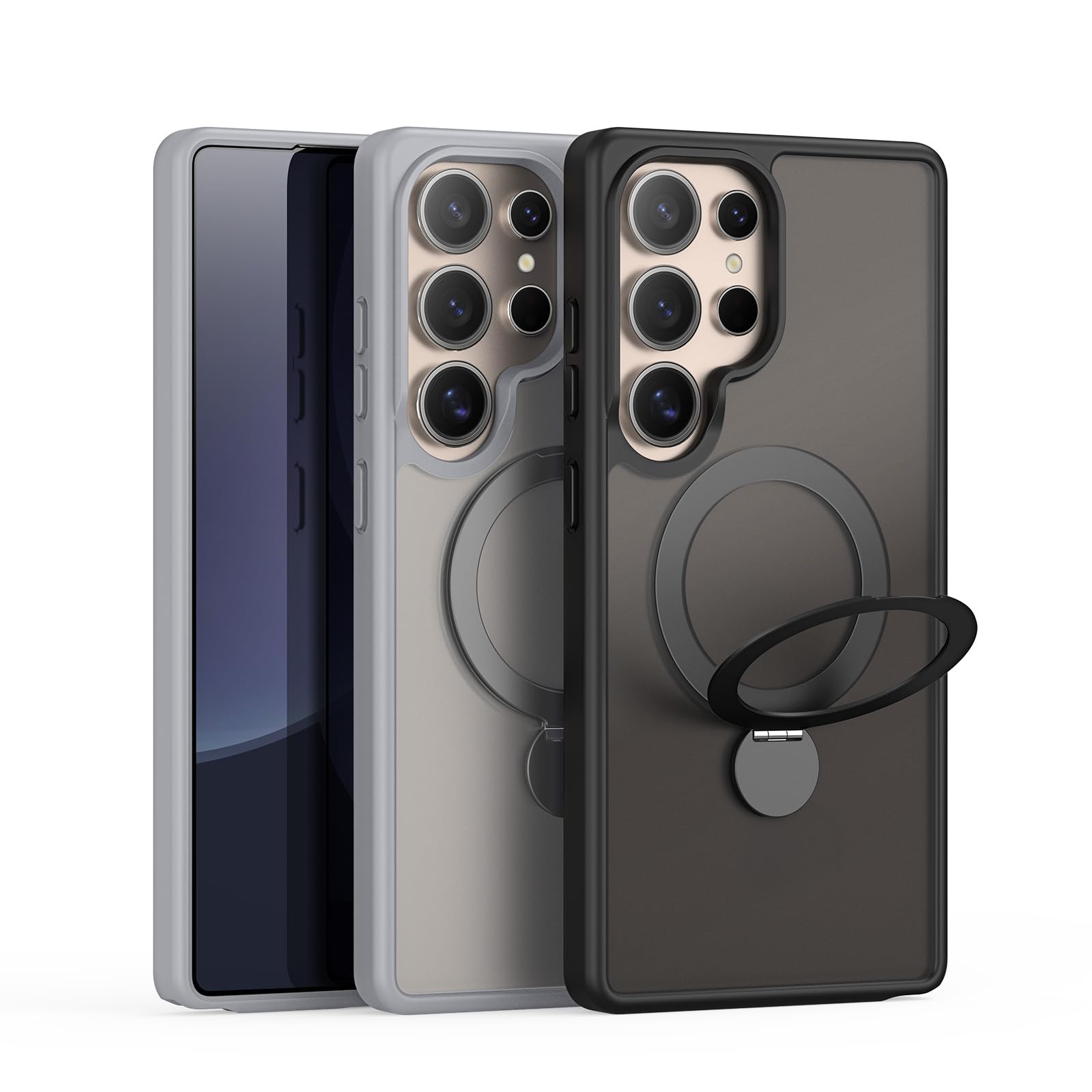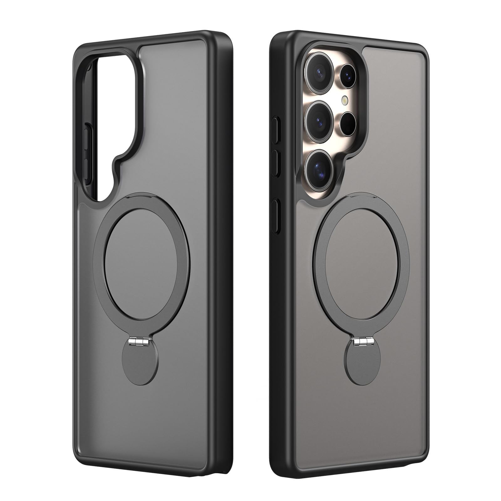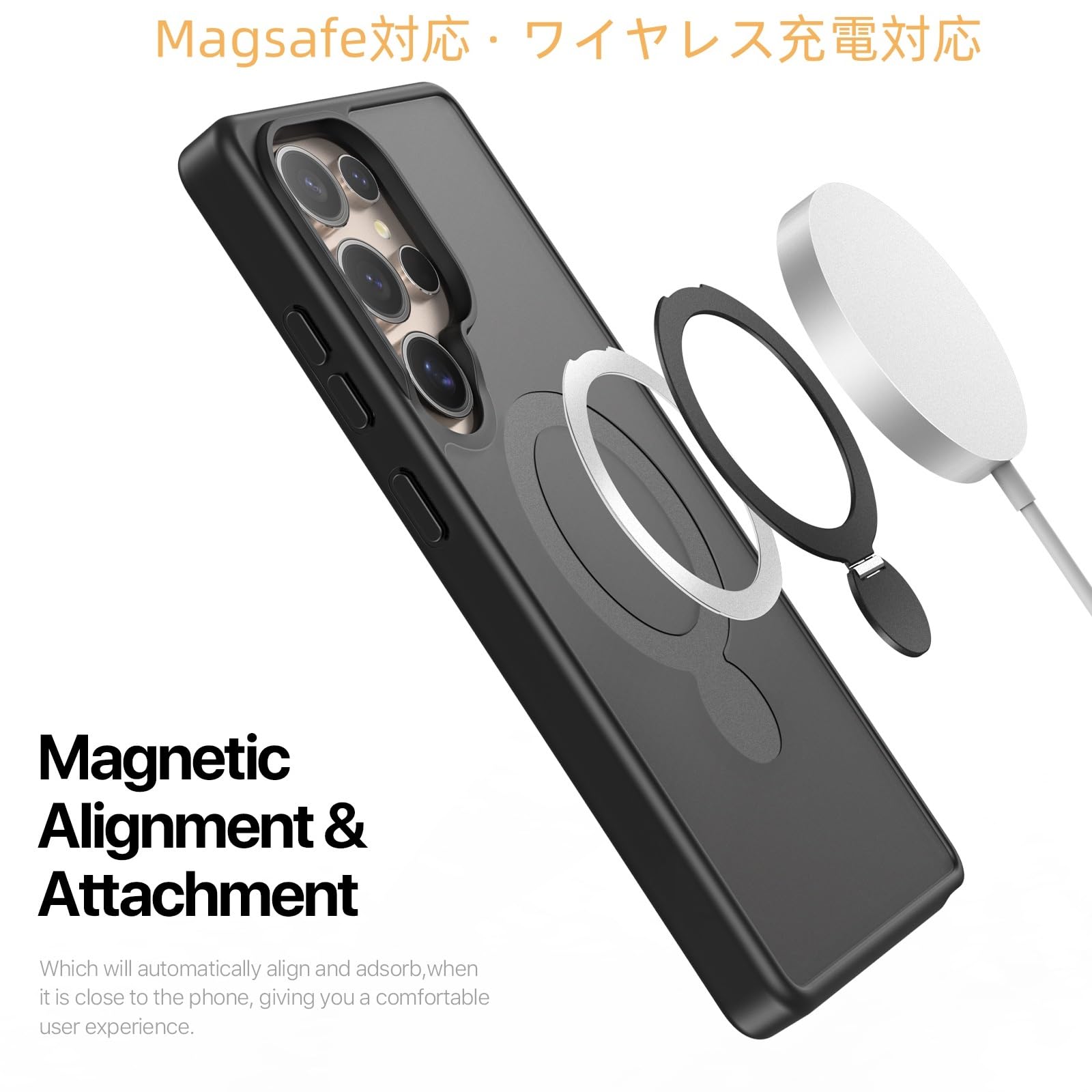 Galaxy S25 Ultra/SC-52F / SCG32 用 ケース 定点360°回転スタンド MagSafe対応 ギャラクシーs25ウルトラ カバー ワイヤレス充電 SUGOIDAN 携帯ケース リング ぎゃらくしーs25ultra ケース 半透明 マグセーフ 軽量 スマホケース (ブラック)