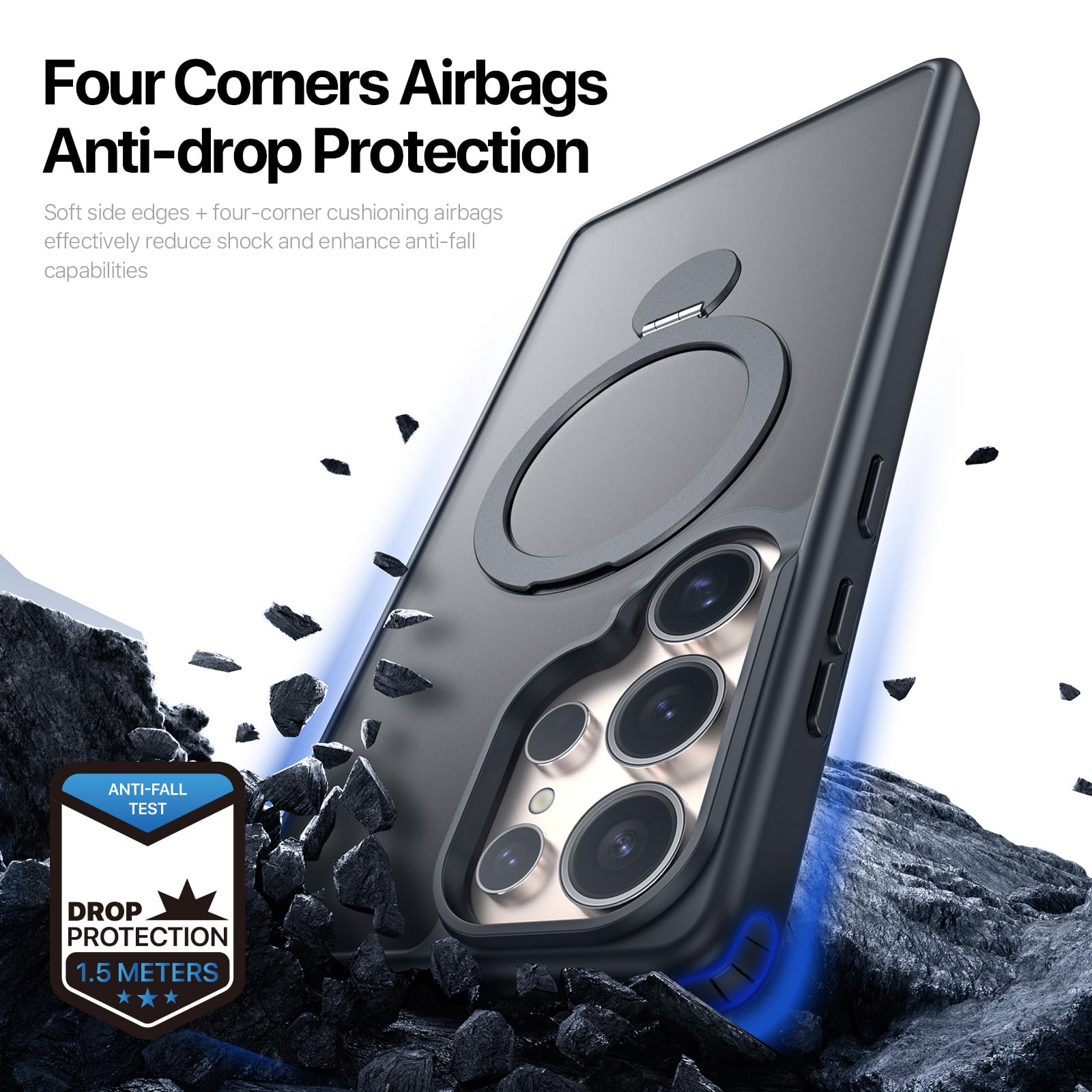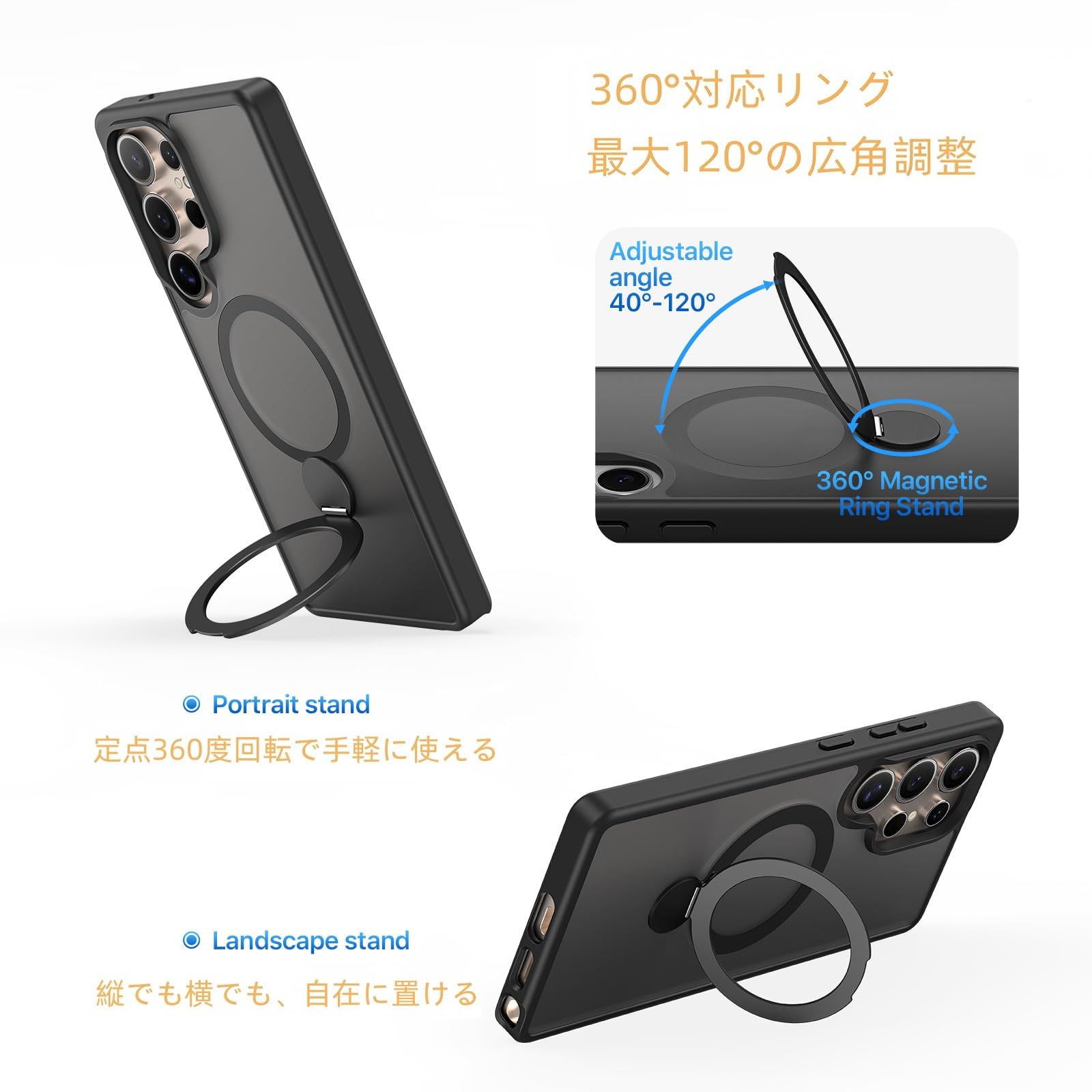 【セール】Galaxy S25 Ultra/SC-52F / SCG32 用 ケース 定点360°回転スタンド MagSafe対応 ギャラクシーs25ウルトラ カバー ワイヤレス充電 SUGOIDAN 携帯ケース リング ぎゃらくしーs25ultra ケース 半透明 マグセーフ 軽量 スマホケース (ブラック) | GIGATERA