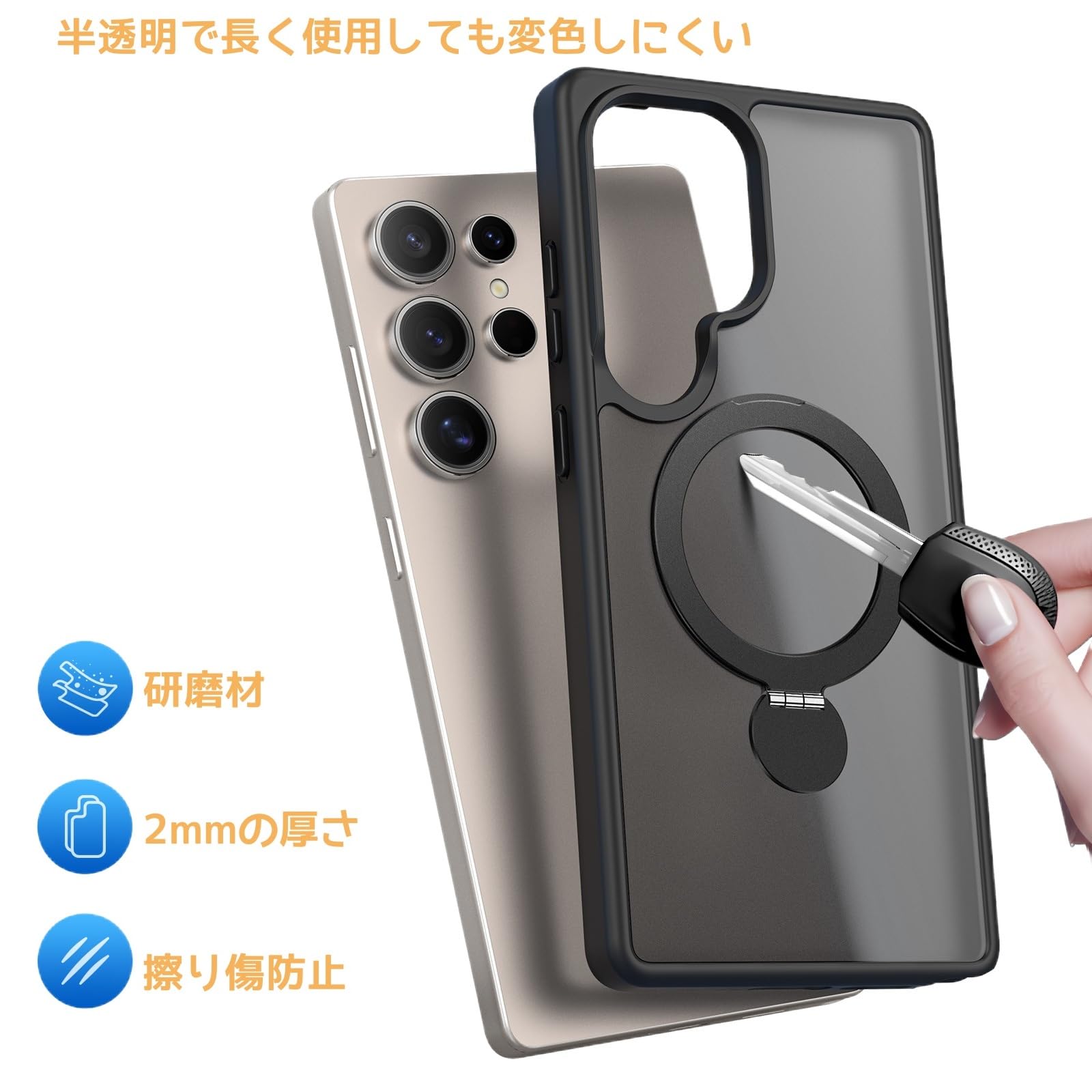 対応モデル:Galaxy S25 Ultra / SC-52F / SCG32用 360リング Magsafe対応 半透明ケース。※製品:お客様の購入日を起点とした1ヶ月以内に、SUGOIDAN 責任による故障が発生した場合、無償新品交換いたします。
