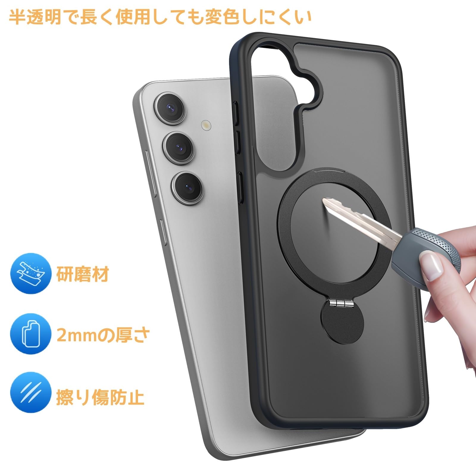 対応モデル:Galaxy S25 / SC-51F / SCG31用 360リング Magsafe対応 半透明ケース。※製品:お客様の購入日を起点とした1ヶ月以内に、SUGOIDAN 責任による故障が発生した場合、無償新品交換いたします。