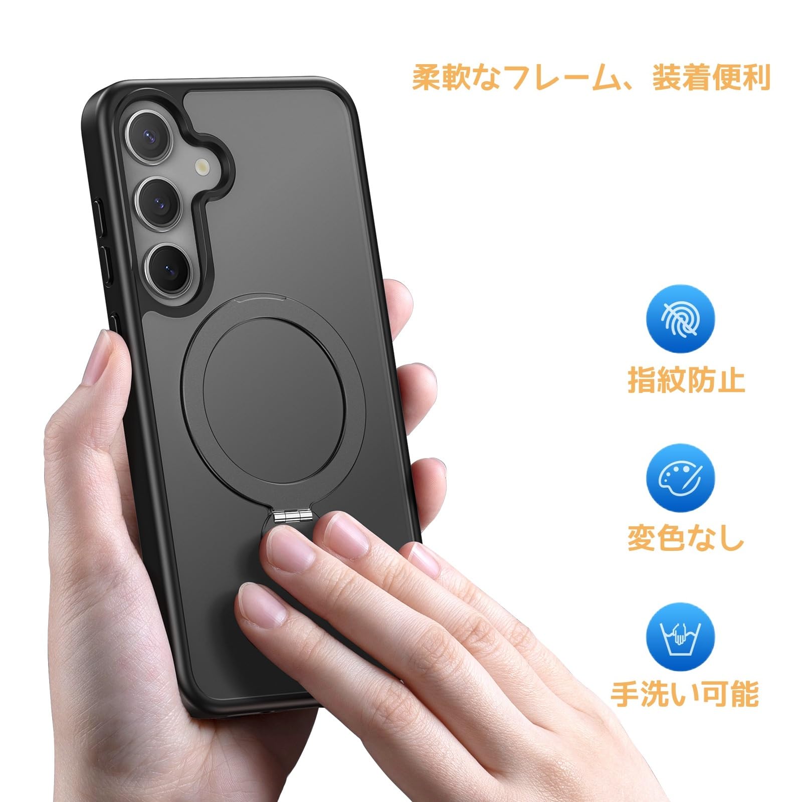 ホワイトバージョンは、傷に強く、黄変しにくい背面プレートと柔軟なポリマーエッジにより、透明度が高く、快適な手触りをお楽しみいただけます。一方で、ブラックとパープルバージョンは、半透明で長く使用しても変色しにくい、更に指紋防止で実用的なぎゃらくしーs25ケースです、見た目がスタイリッシュで、握り心地が良くなっています。