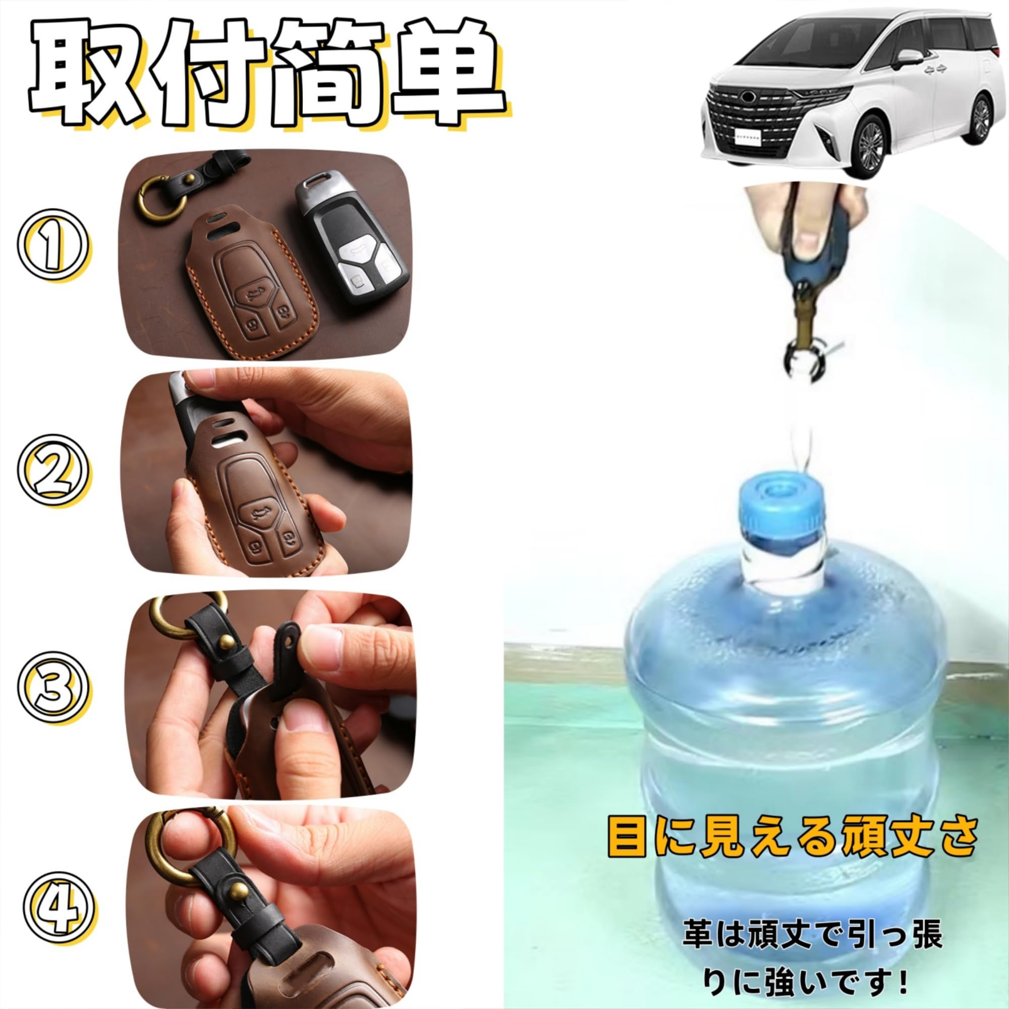 【在庫処分】[TatkDIY] アルファード ヴェルファイア 30系 40系 専用スマートキーケース キーカバー キーホルダー カスタムアクセサリーパーツ 新型本革 ロゴ付 キズ防止 落下防止 ヴェルファイア 6ボタンブラック | GIGATERA