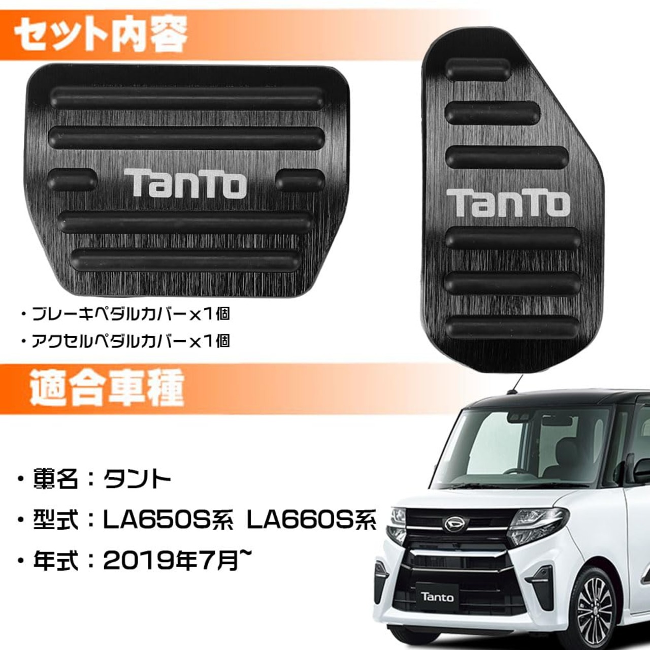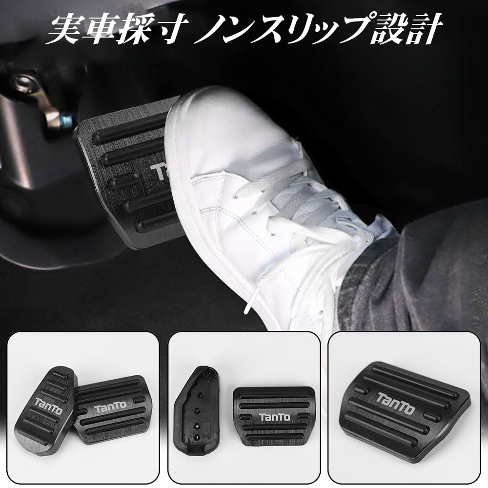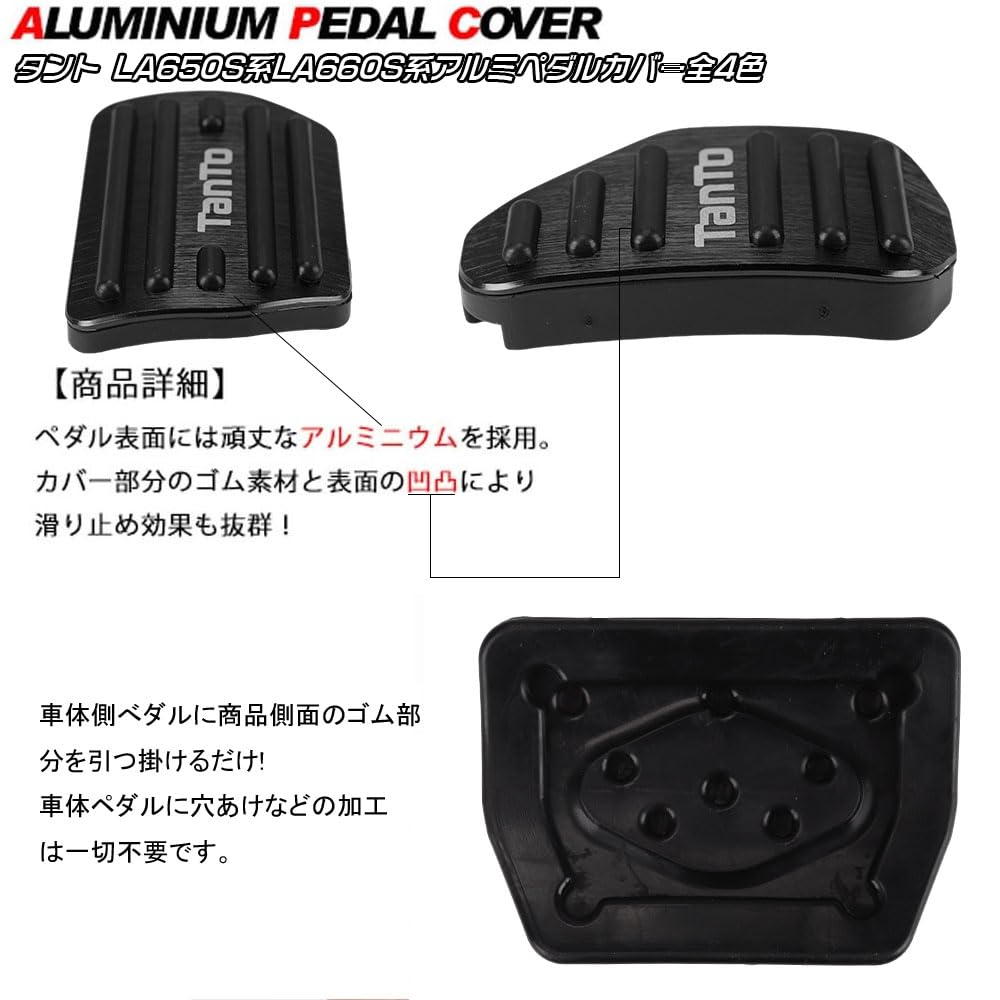 【在庫処分】LEXLEYS「最新型」ダイハツ タント TANTO LA650S系 LA660S系(2019年7月〜) アルミ ペダル アクセル ブレーキ カバー 工具不要 滑り止め付 被せる ゴム カスタムドレスアップ パーツ(ブラック)