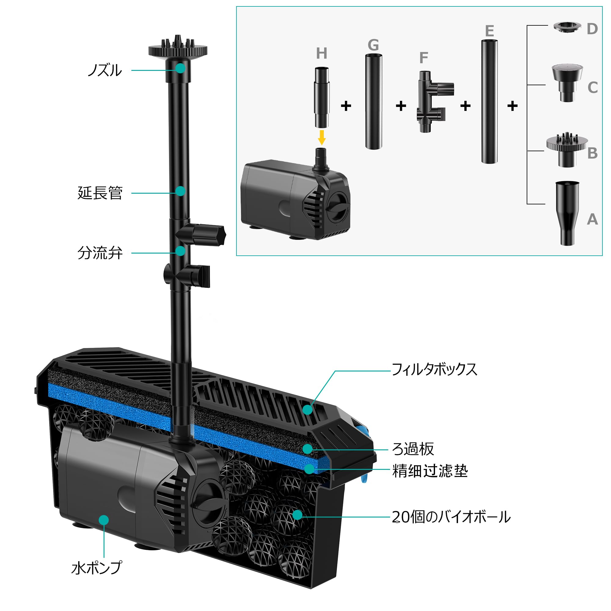 【幅広く適用】ビオトープ、バードバス、魚の水槽、庭の装飾、ガーデンのお手入れ、池、水の演出や鑑賞など様々な用途があります。家庭用にも、業務用にも適しています。お買い上げ日から1年間品質をご提供します。