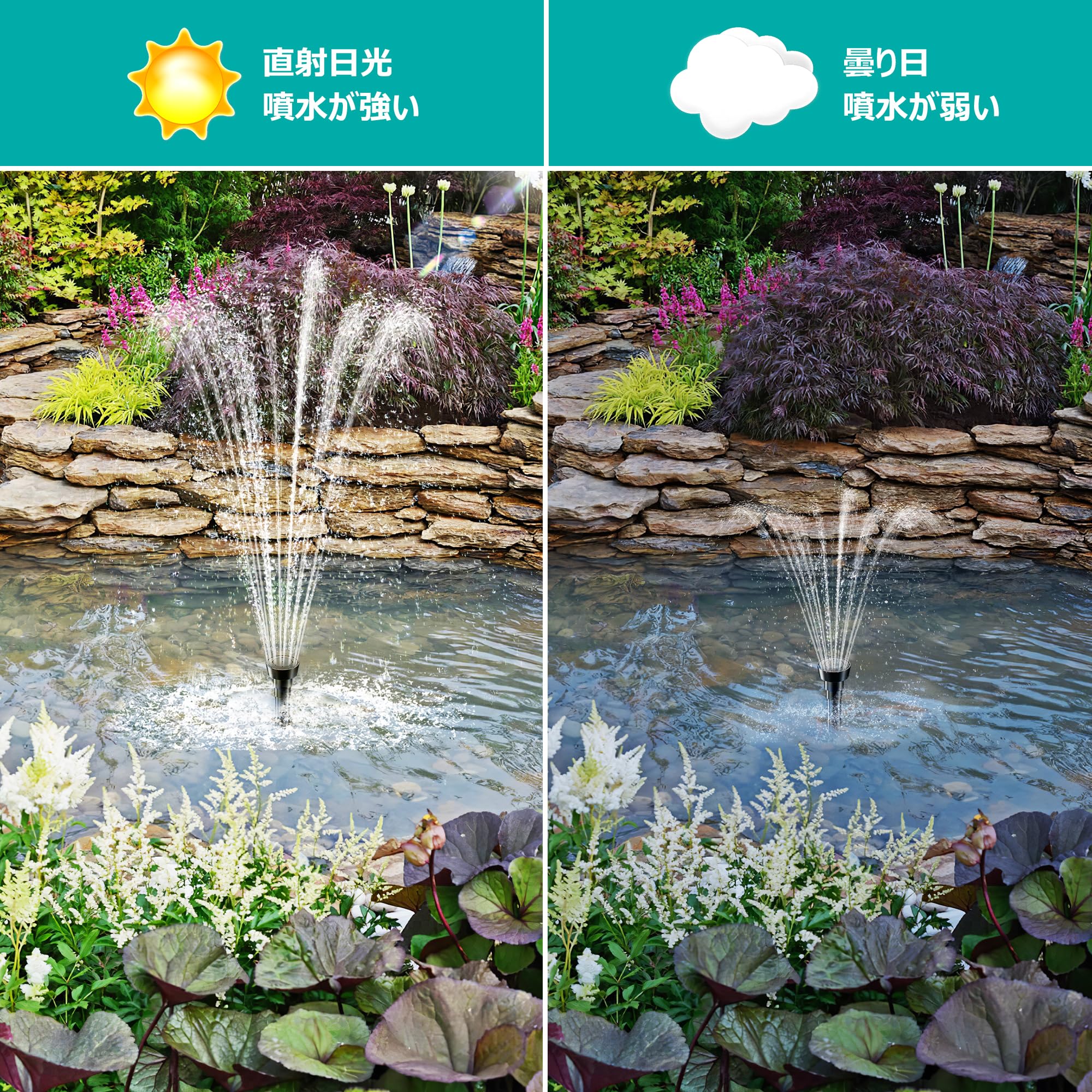 【DIYソーラー噴水ポンプキット】:ソーラーパネル、フィルタキット、ポンプを含み。噴水ポンプは太陽光で電力を供給し、ソーラーパネルは直射日光の所に設置して、ポンプは池に置いて使用します。DIY景色と噴水を作れ、水をきれいとともに、水の循環をできます。