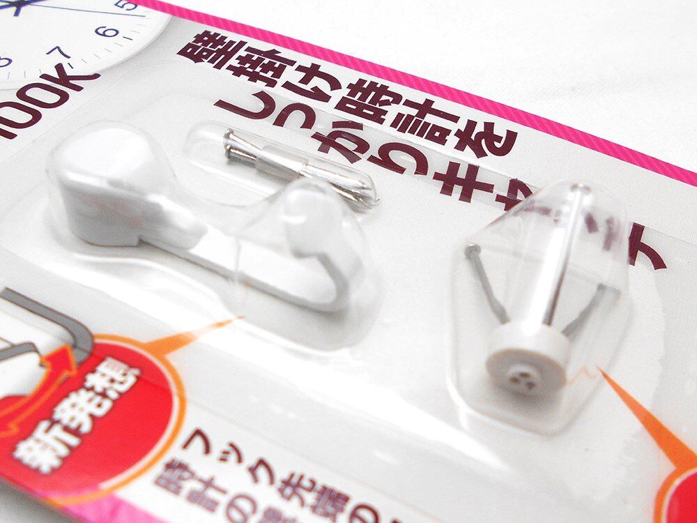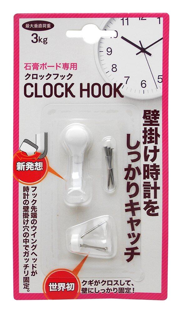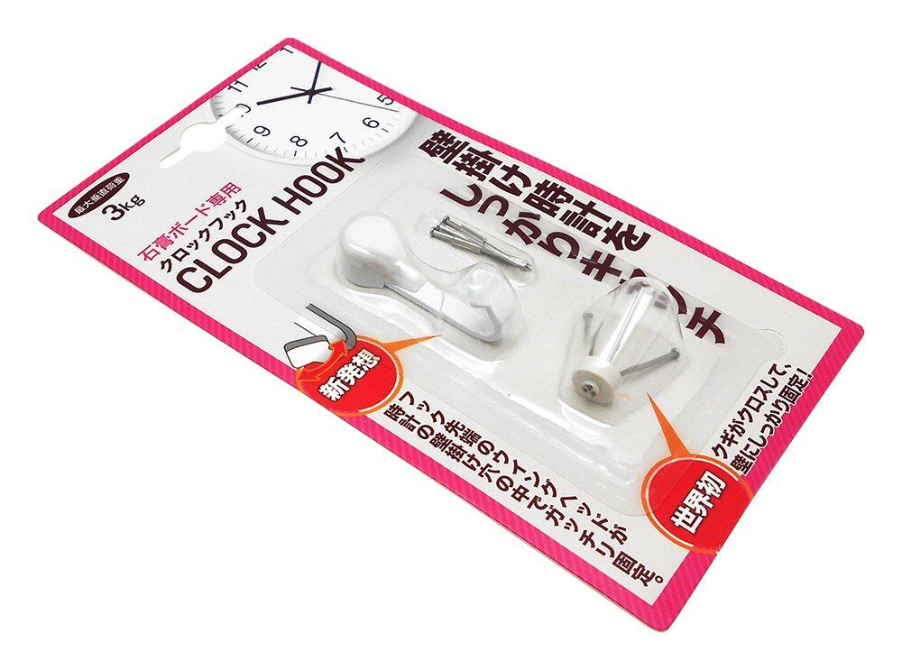 新発想! フック先端のウイングヘッドが時計の壁掛け穴の中でガッチリ固定