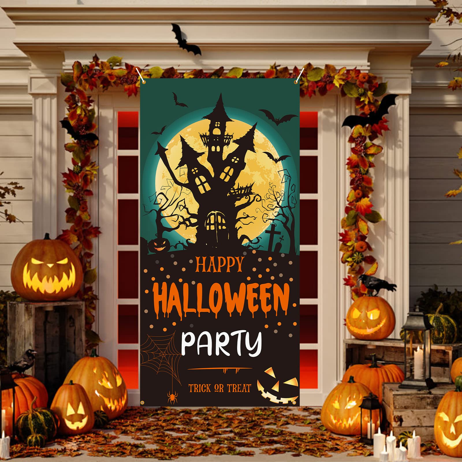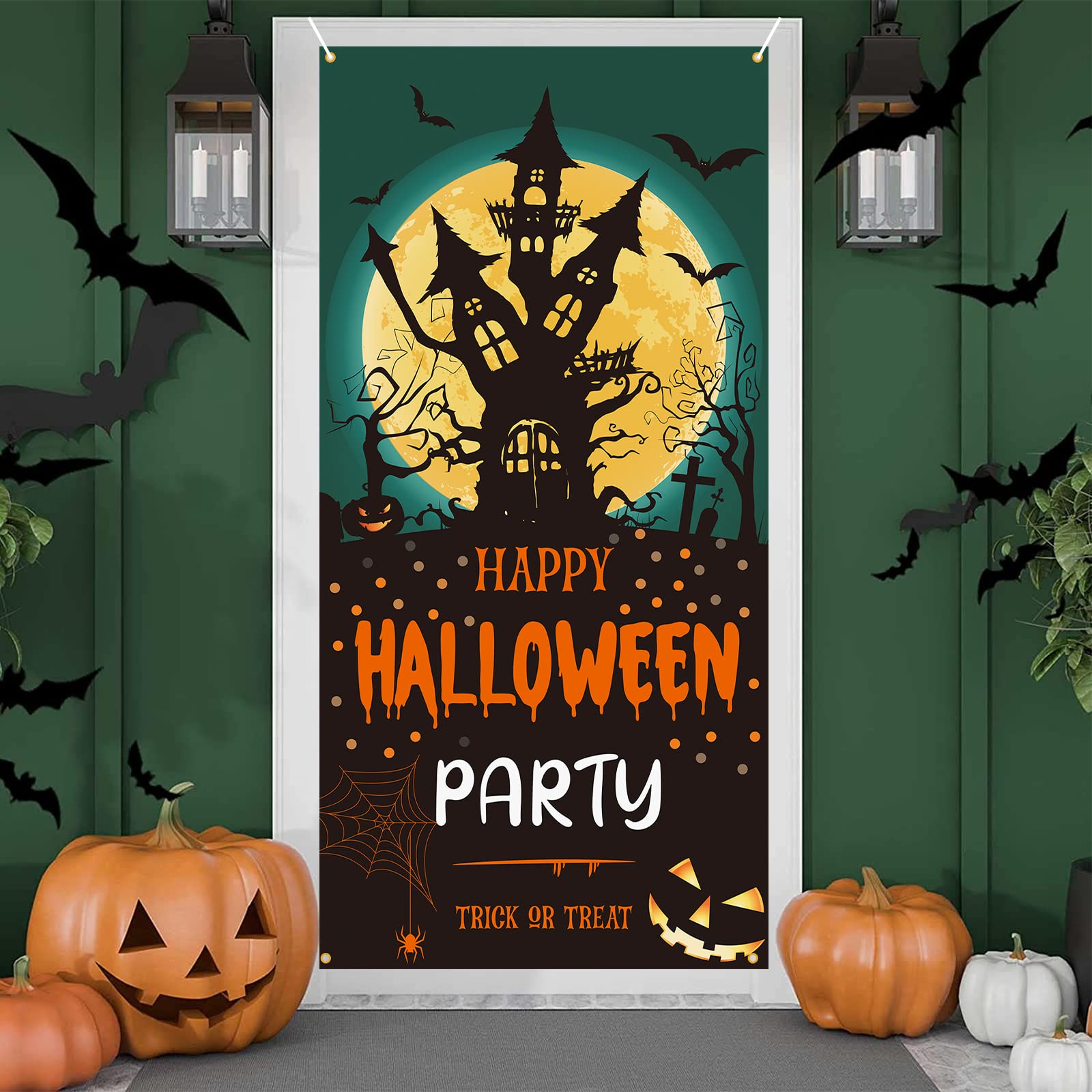 Paready ハロウィン タペストリー 壁掛け おしゃれ 飾り付け 壁 飾り 背景 デコレーション 装飾 Happy Halloween パーティー ハロウィングッズ 窓 玄関 部屋 インテリア かぼちゃ ブラック・グリーン(90*185cm)
