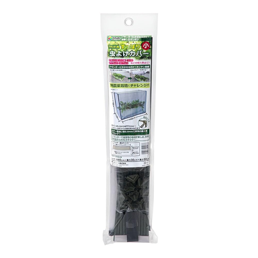 DAIM すっぽり虫よけカバー 小 幅60cm×奥行30cm×高50cm 虫よけ 虫除け 防虫ネット 害虫 対策 防虫カバー 虫 家庭菜園 園芸 ネット カバー キット 野菜作り ベランダ 庭 畑 玄関 (防虫 小)