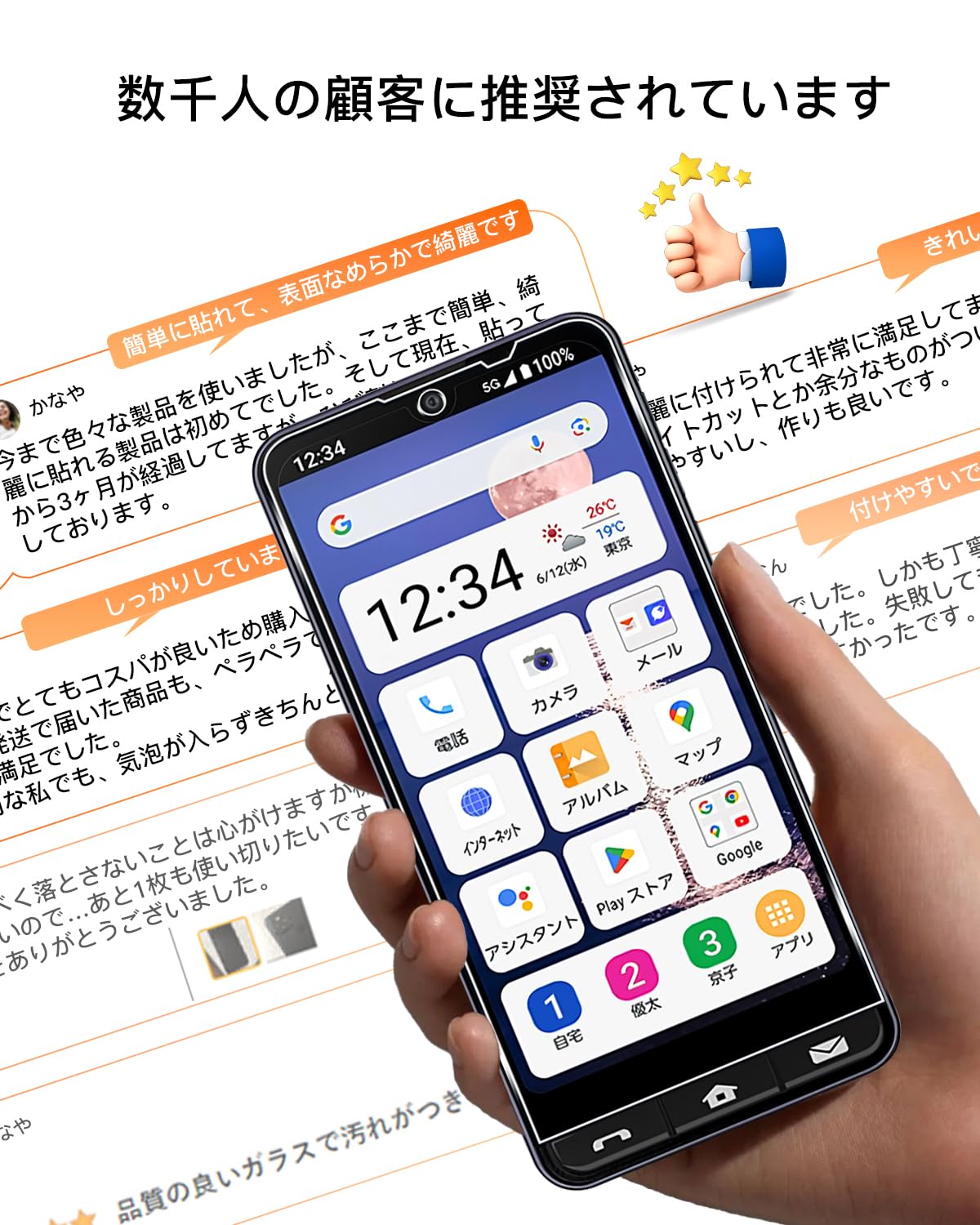 【?自動吸着?指紋防止】保護フィルムの接着面は特殊な自動吸着層を使用しているので、気泡が入りづらくなっています。フィルム貼りが苦手な人や絶対気泡を入れたくない人も簡単に貼り付けできて助かります。表面には指紋が付きにくくなるアンチフィンガープリントコーティングを施され、常に清潔感を保てます。指紋が気になってきた場合でも簡単に拭き取れます。