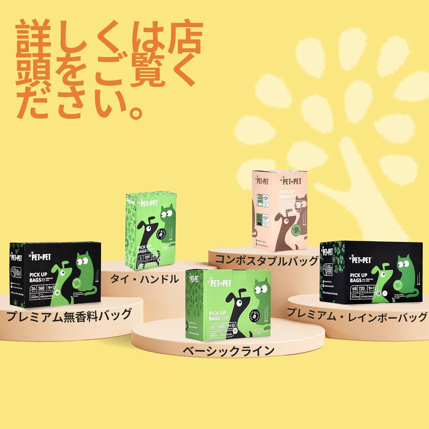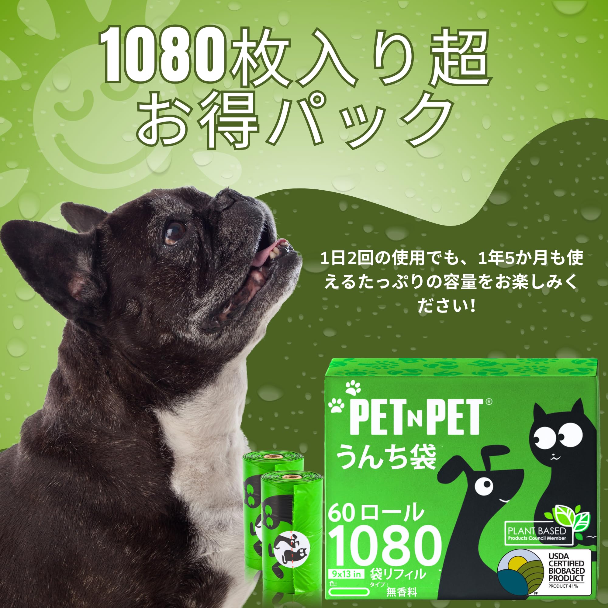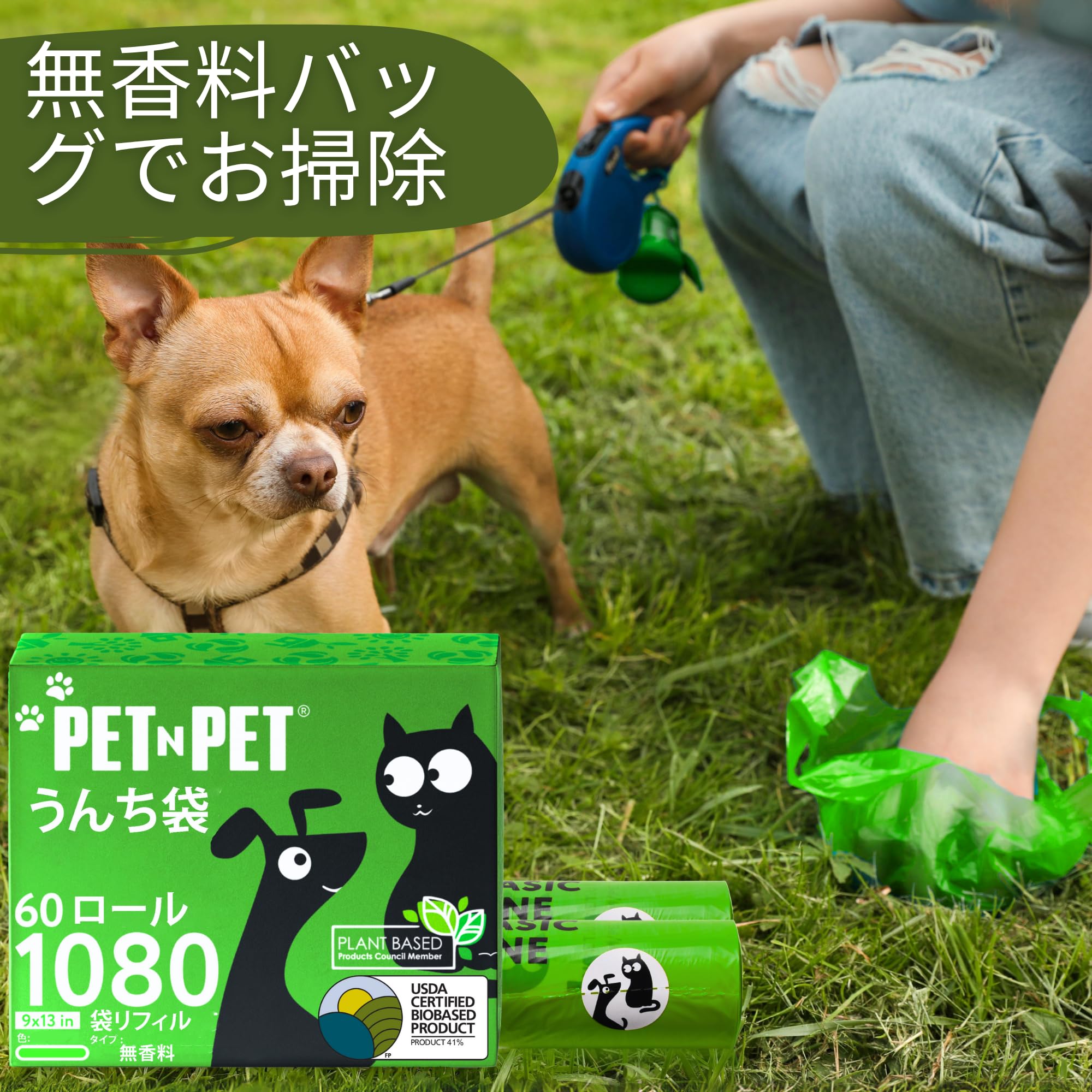 Pet N Pet うんち袋、エチケット袋、60ロール入り1080個、臭わない犬のうんち袋、犬の散歩用猫用トイレ袋、USDA認定 38% 植物由来 & 62% PE、漏れ防止で丈夫