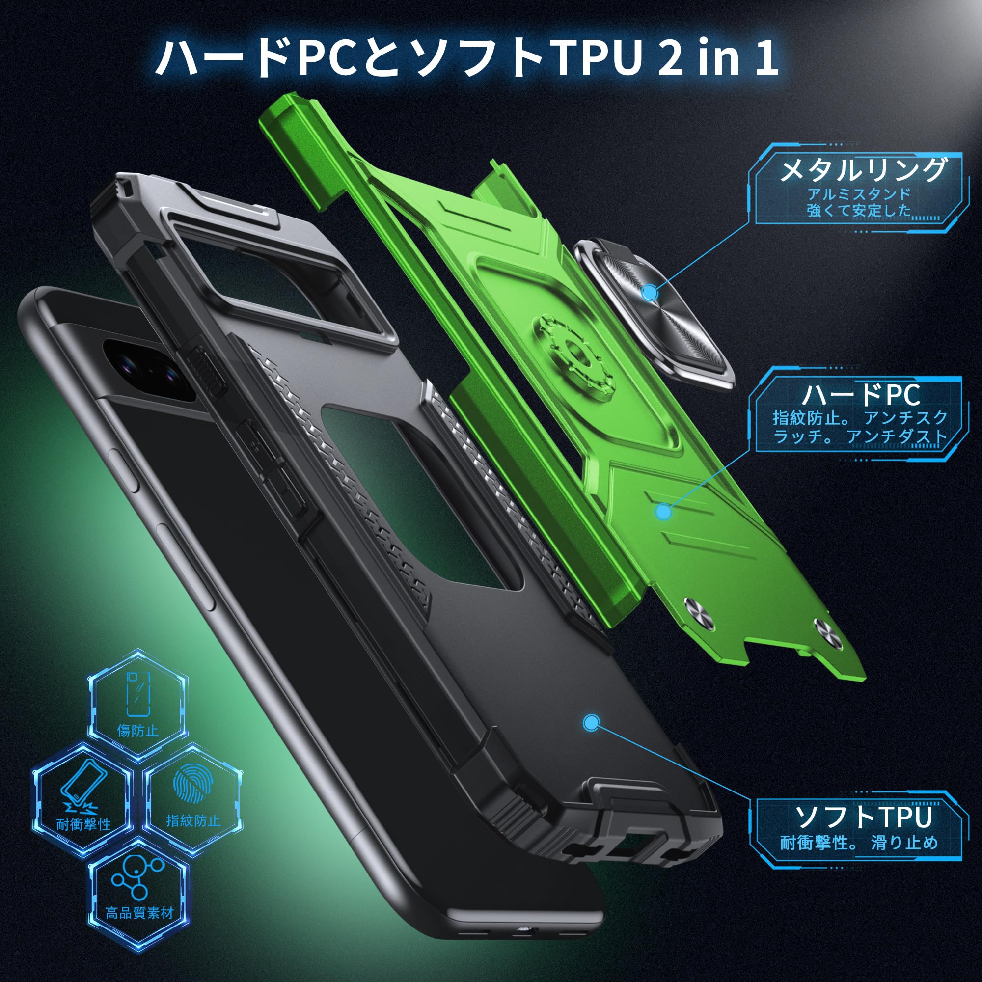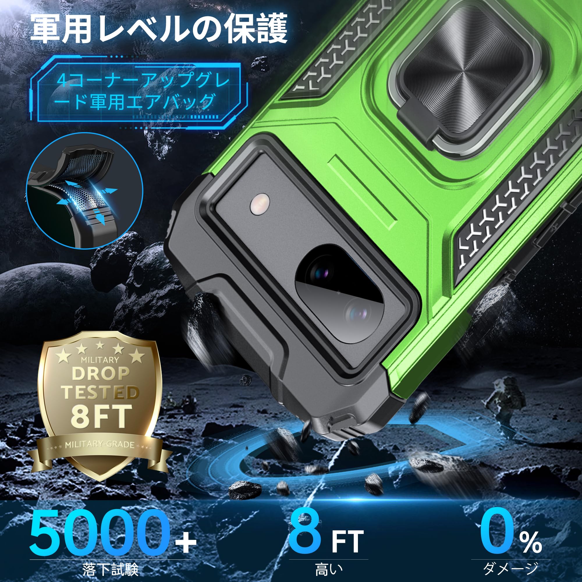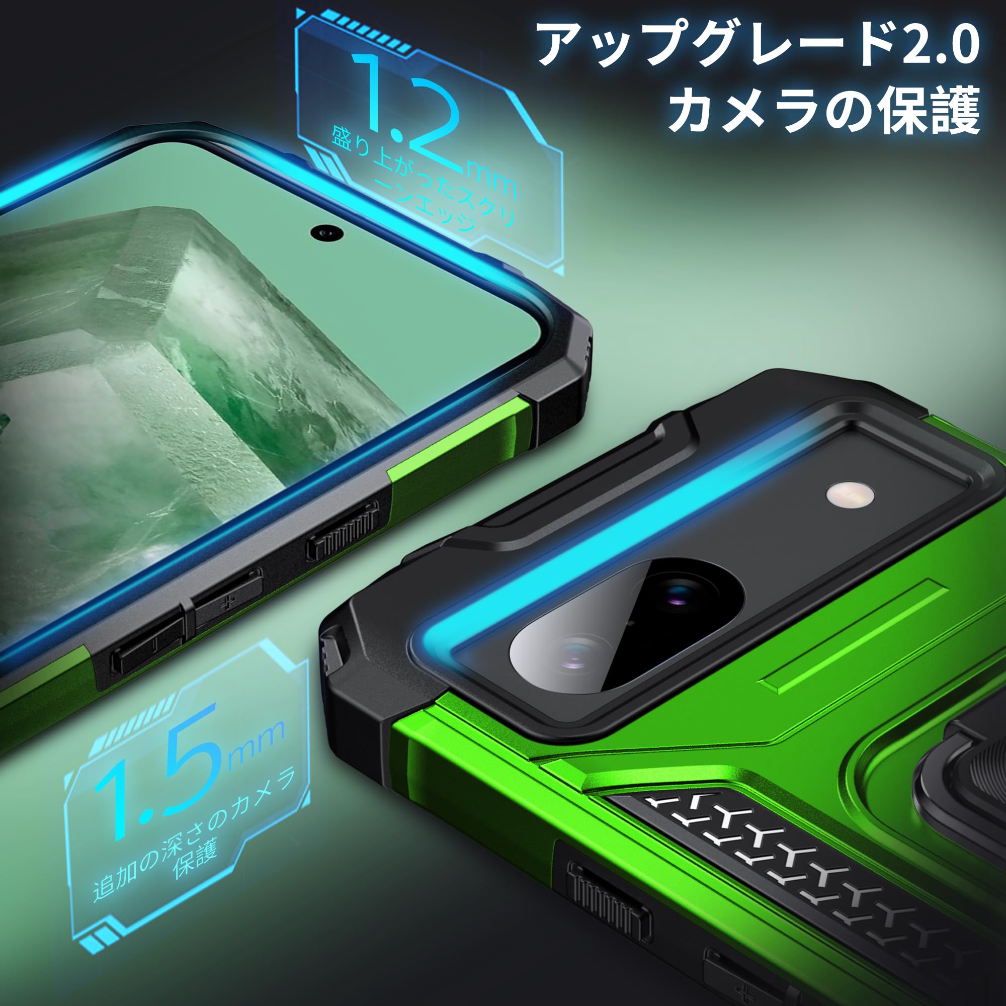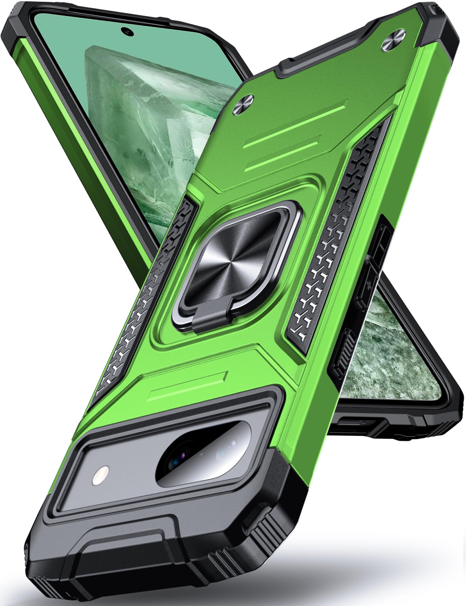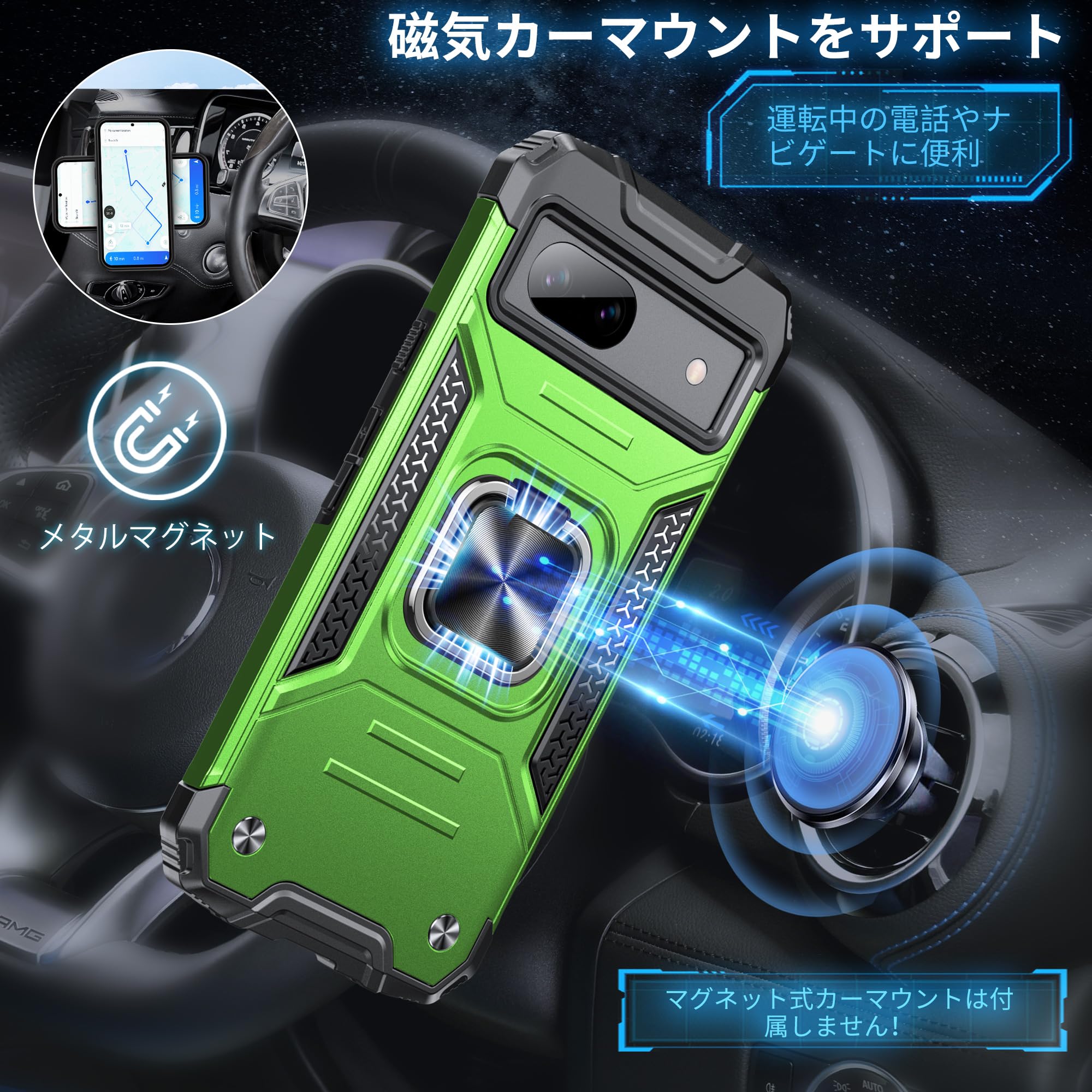 DASFOND Google Pixel 8A ケース 360度回転メタルリングキックスタンド付き 米軍MIL 耐衝撃 強化PCハードバック 傷つけ防止 スマホケース グーグルピクセル8A カバー 6.1 インチ グリーン