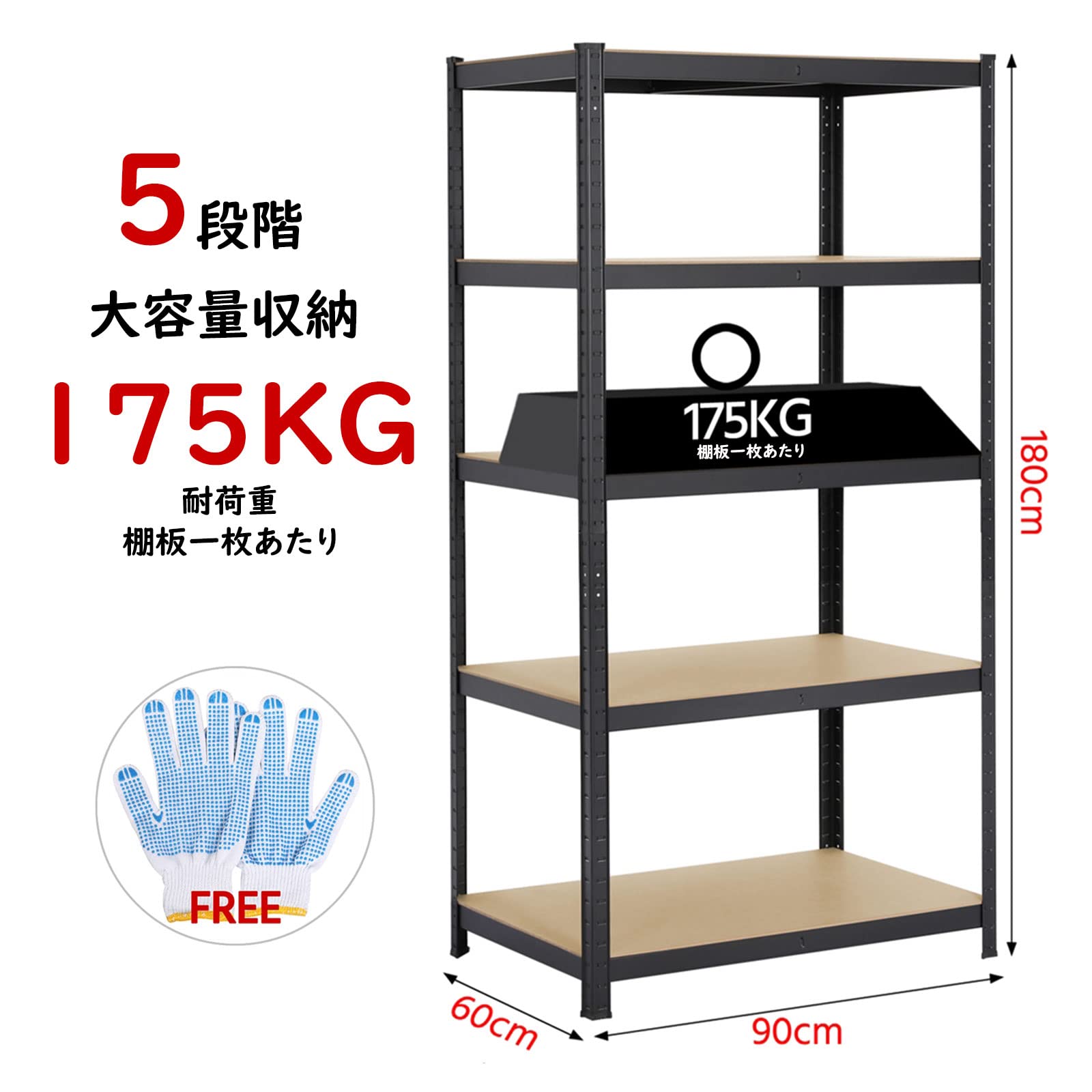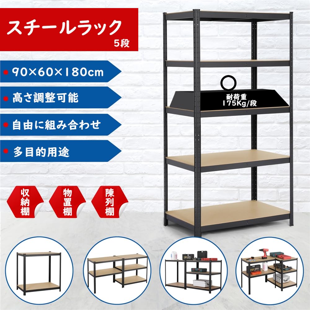 Yaheetech スチールラック本体 キッチンラック 幅90 メタルラック 5段 収納棚 高さ調節可 ステンレスラック 収納ラック 防サビ加工 ネジなし 組立簡単 90×60×180cm 高耐荷重 キッチン 物置 倉庫 ガレージ
