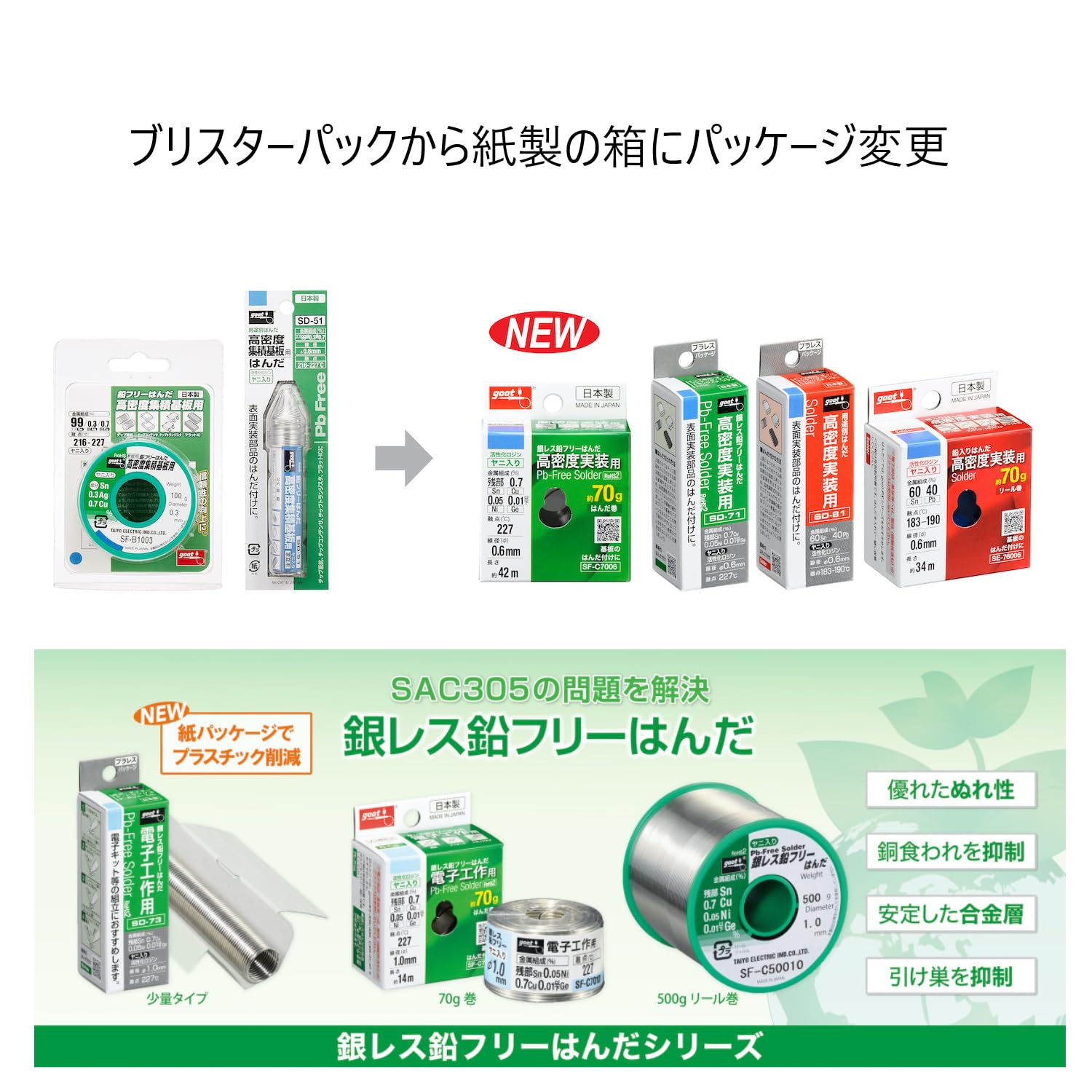 精密プリント基板用 鉛入りはんだ φ0.8mm スズ60%/鉛40% ヤニ入り SD-82 日本製