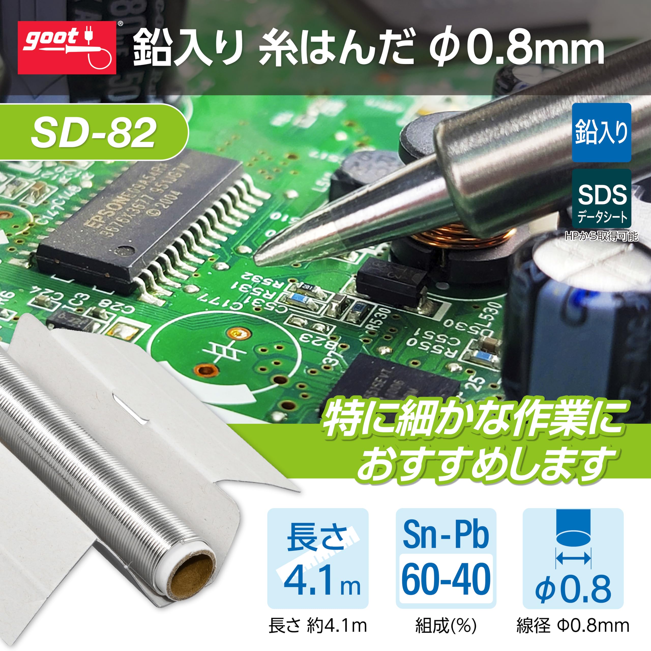 太洋電機産業(goot) 精密プリント基板用 鉛入りはんだ φ0.8mm 約4.1m スズ60%/鉛40% ヤニ入り SD-82 日本製
